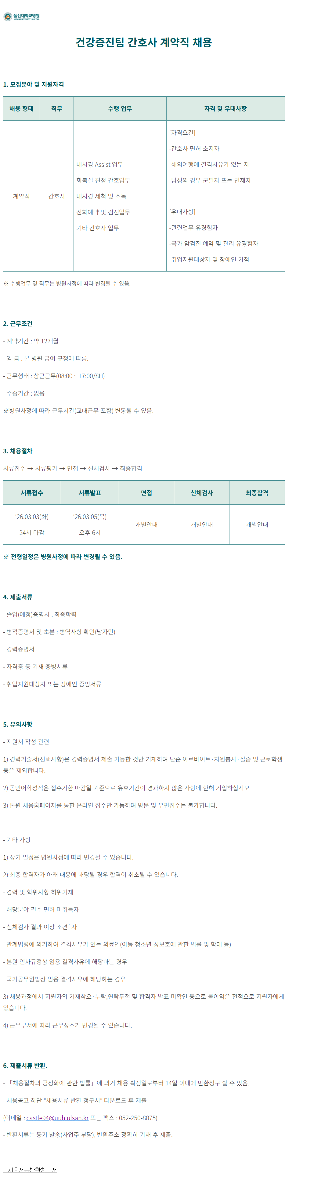°Ç°ÁõÁøÆÀ °£È£»ç °è¾àÁ÷ ä¿ë