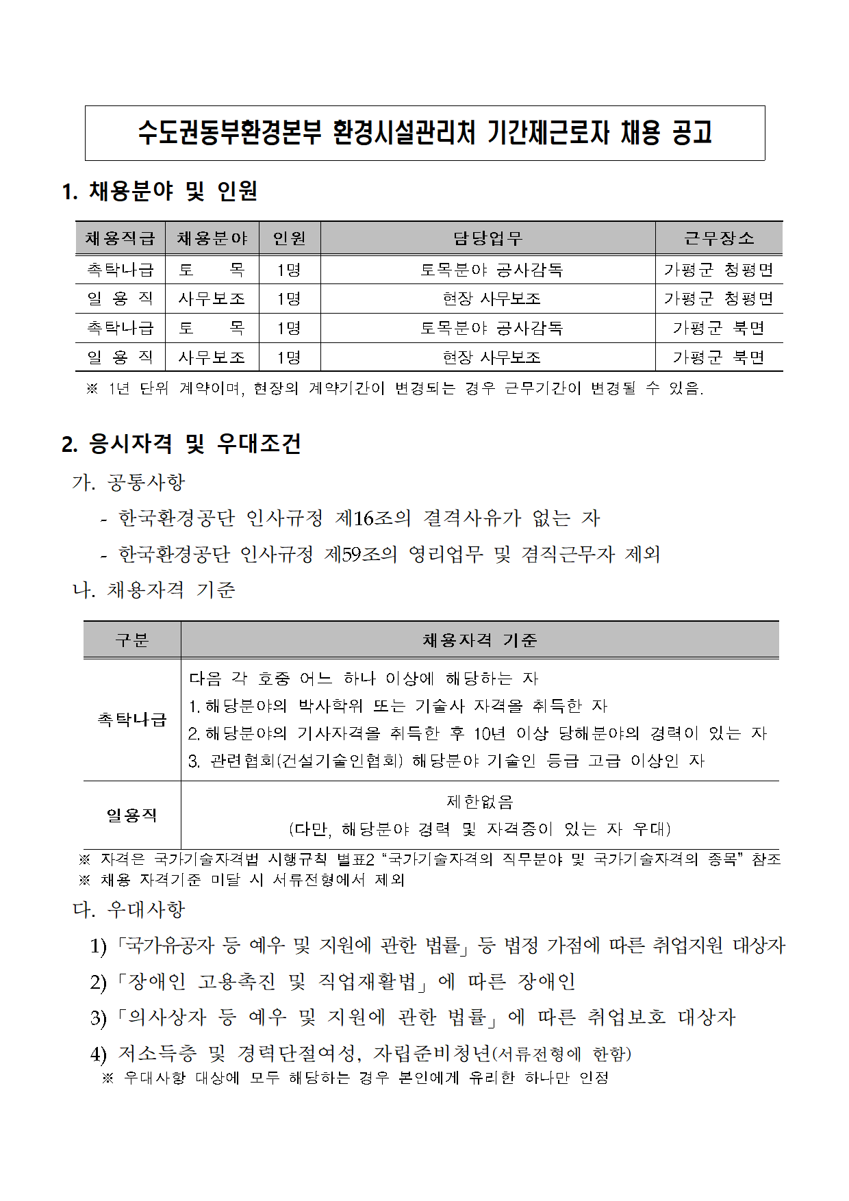 Çѱ¹È¯°æ°ø´Ü ¼öµµ±Çµ¿ºÎȯ°æº»ºÎ ȯ°æ½Ã¼³°ü¸®Ã³ ±â°£Á¦ ±Ù·ÎÀÚ(ÃËŹÁ÷, ÀÏ¿ëÁ÷) ä¿ë °ø°í