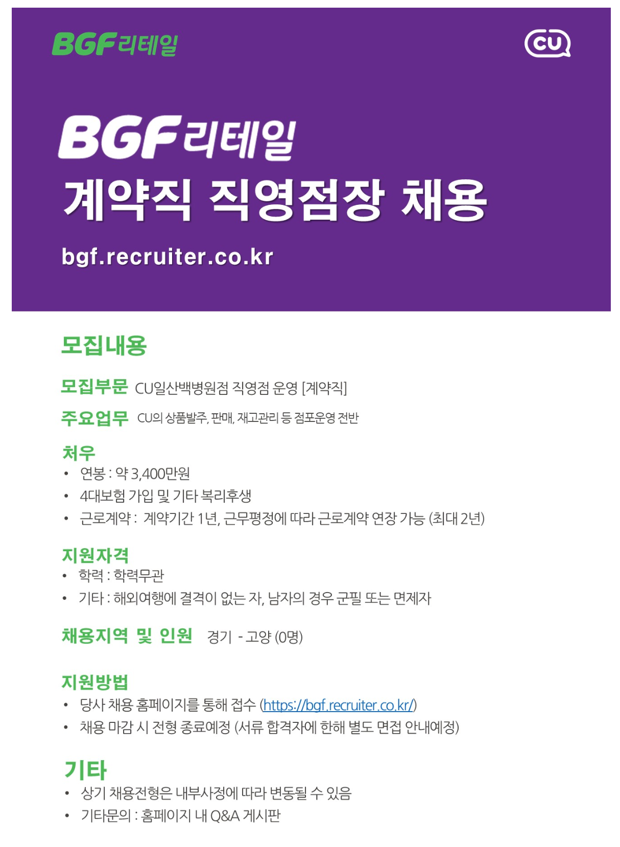 [BGF¸®Å×ÀÏ] 2026³â °è¾àÁ÷ Á÷¿µÁ¡Àå ä¿ë - ÀÏ»ê¹éº´¿øÁ¡