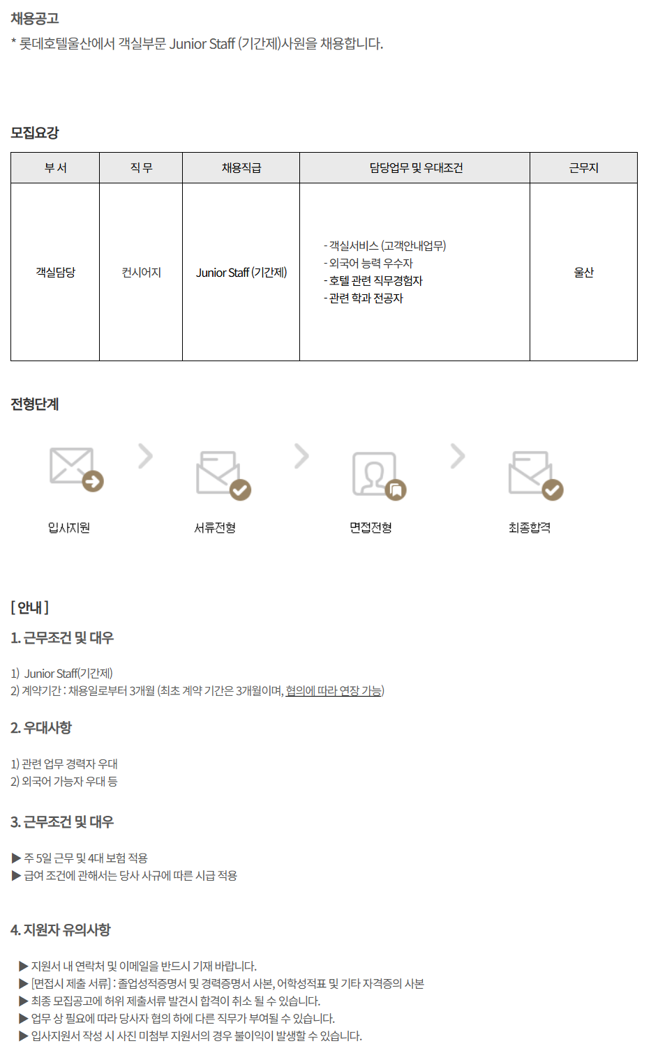 * ·Ôµ¥È£ÅÚ¿ï»ê¿¡¼ °´½ÇºÎ¹® Junior Staff (±â°£Á¦)»ç¿øÀ» ä¿ëÇÕ´Ï´Ù.