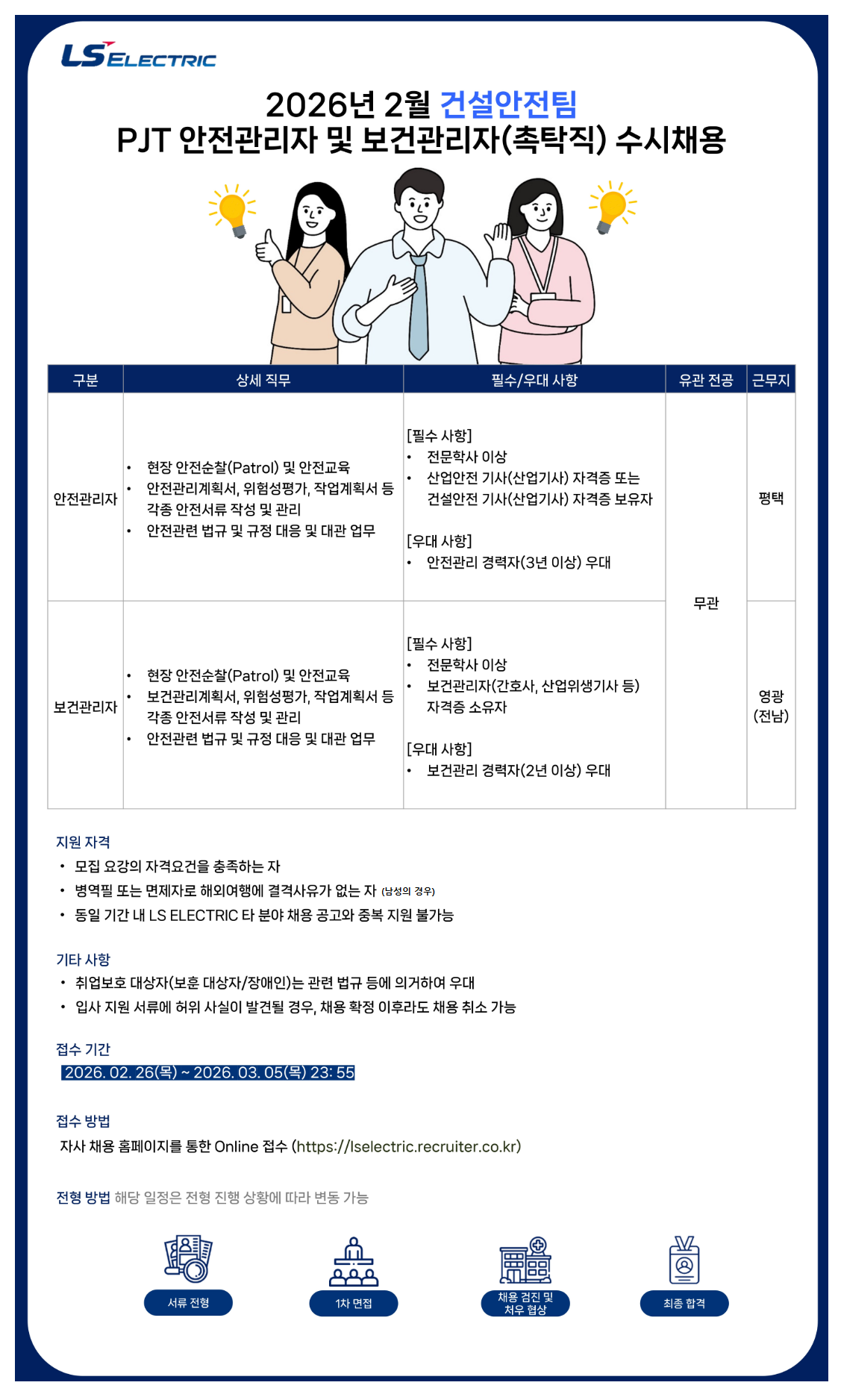 2026³â 2¿ù °Ç¼³¾ÈÀüÆÀ PJT ¾ÈÀü°ü¸®ÀÚ ¹× º¸°Ç°ü¸®ÀÚ(ÃËŹÁ÷) ¼ö½Ãä¿ë