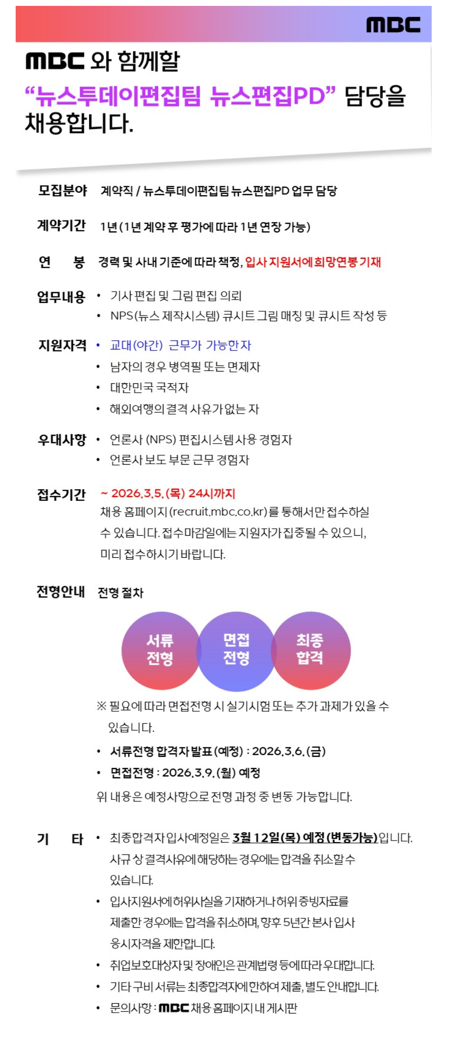 MBC ´º½ºÅõµ¥ÀÌÆíÁýÆÀ ´º½ºÆíÁýPD ´ã´ç ¸ðÁý