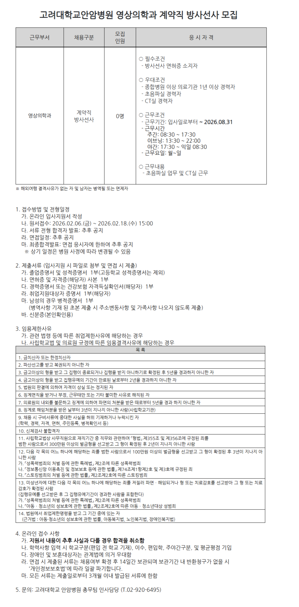 [¾È¾Ïº´¿ø 25-289]¿µ»óÀÇÇаú °è¾àÁ÷ ¹æ»ç¼±»ç ¸ðÁý