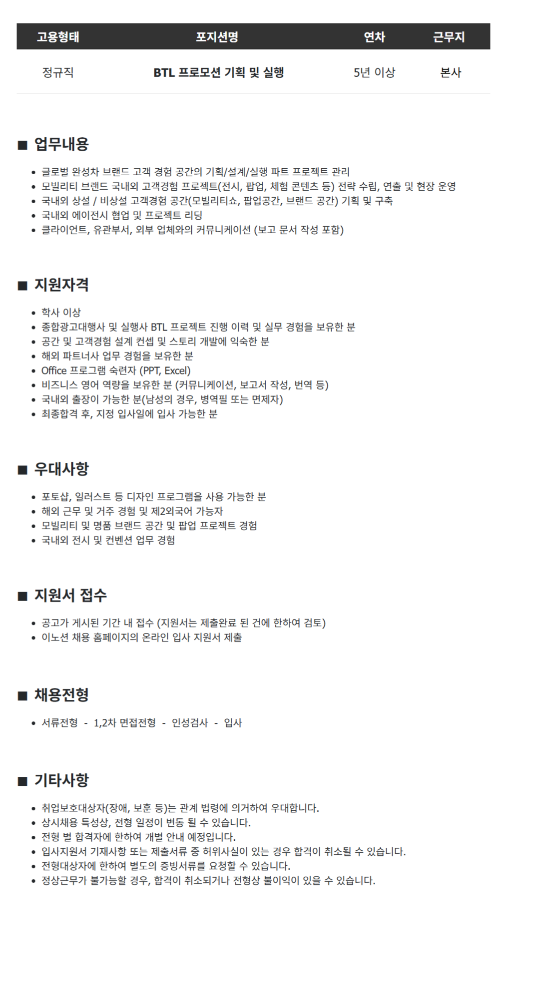 °í¿ëÇüÅ Æ÷Áö¼Ç¸í ¿¬Â÷ ±Ù¹«Áö Á¤±ÔÁ÷ BTL ÇÁ·Î¸ð¼Ç ±âȹ ¹× ½ÇÇà 5³â ÀÌ»ó º»»ç