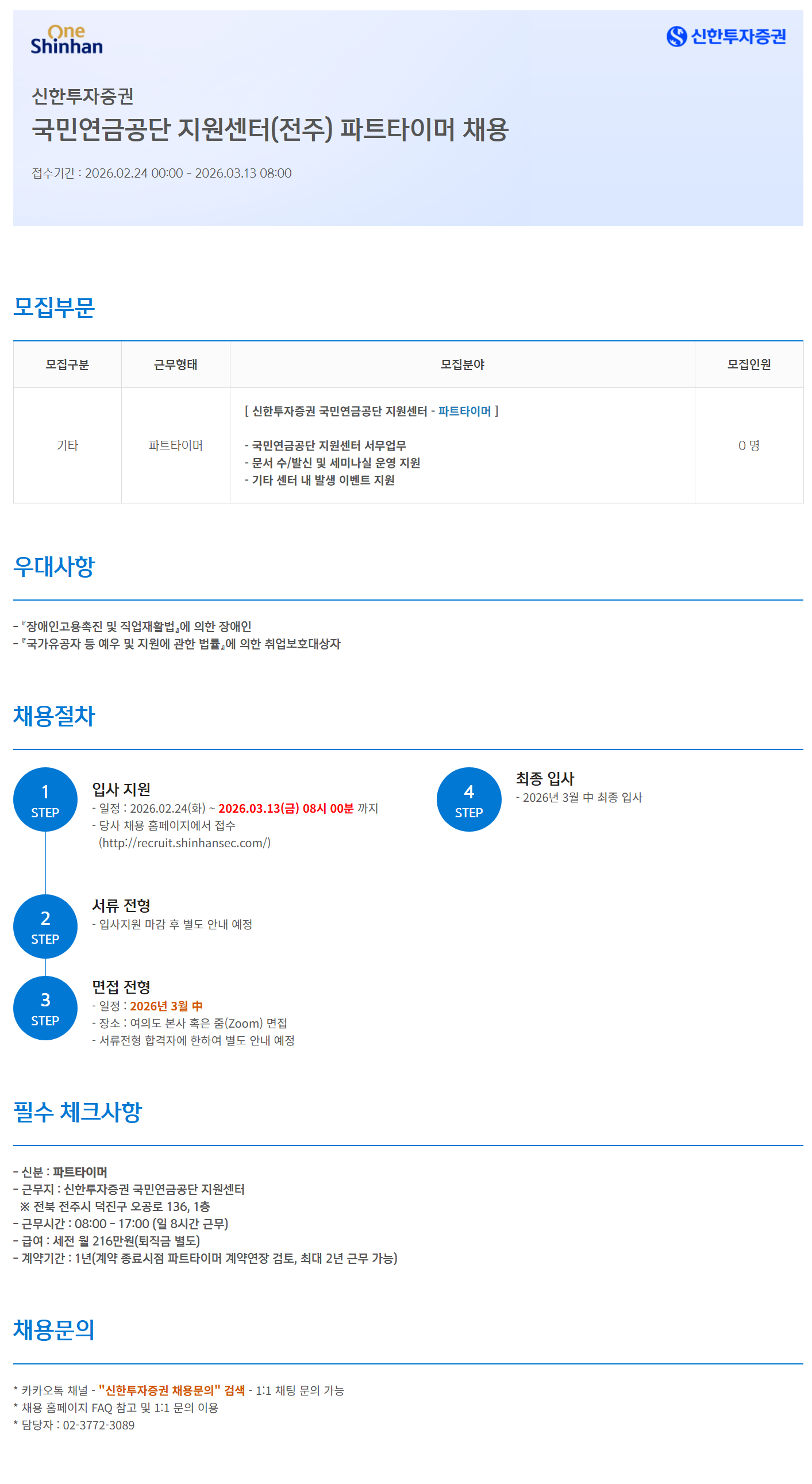 ±¹¹Î¿¬±Ý°ø´Ü Áö¿ø¼¾ÅÍ(ÀüÁÖ) ÆÄƮŸÀÌ¸Ó Ã¤¿ë