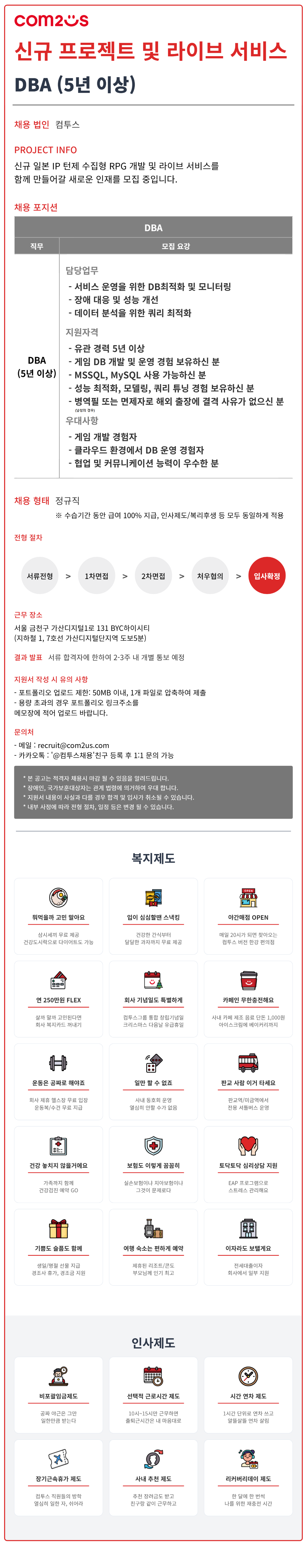 ½Å±Ô ÇÁ·ÎÁ§Æ® ¹× ¶óÀÌºê ¼ºñ½º DBA (5³â ÀÌ»ó)