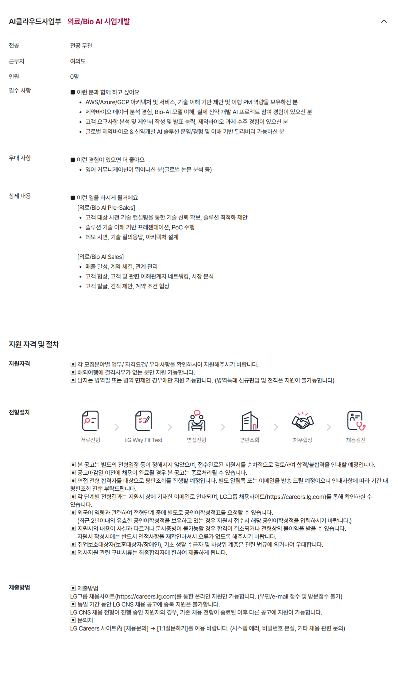 [LG CNS] ÀÇ·á/Bio AI Sales/Presales ´ã´çÀÚ ¸ðÁý(°æ·Â)