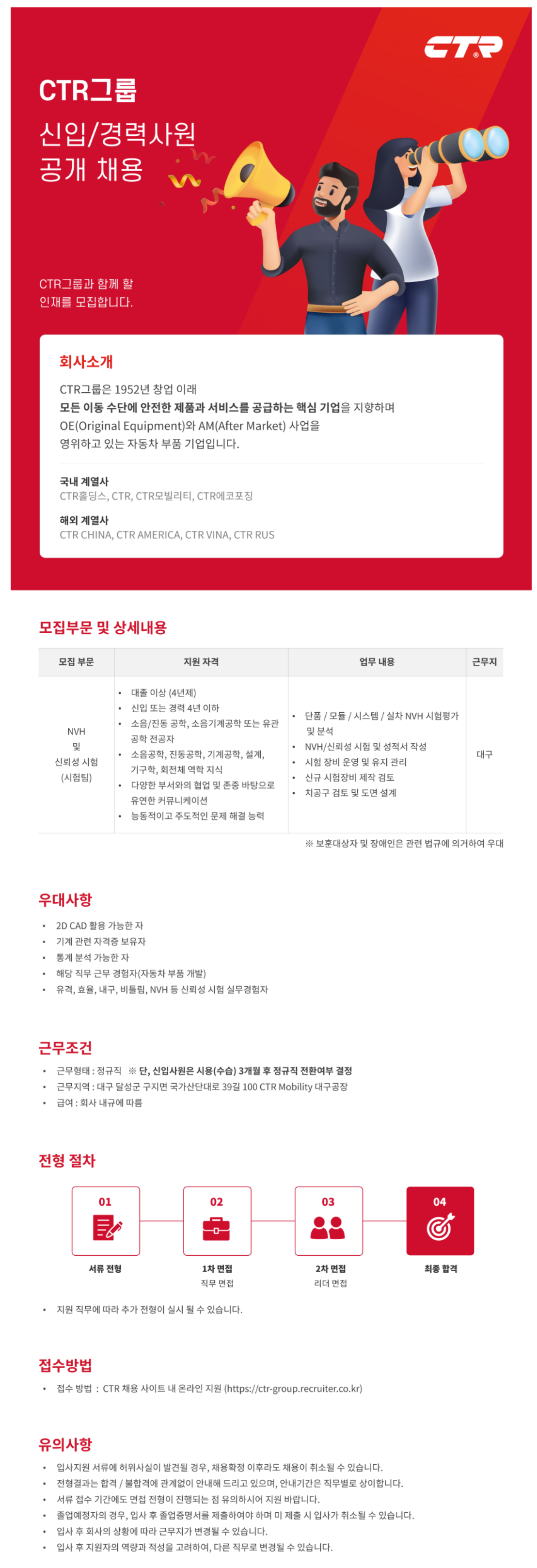 CTR Mobility NVH ¹× ½Å·Ú¼º ½ÃÇè(´ë±¸) ½ÅÀÔ/°æ·ÂÁ÷ ä¿ë
