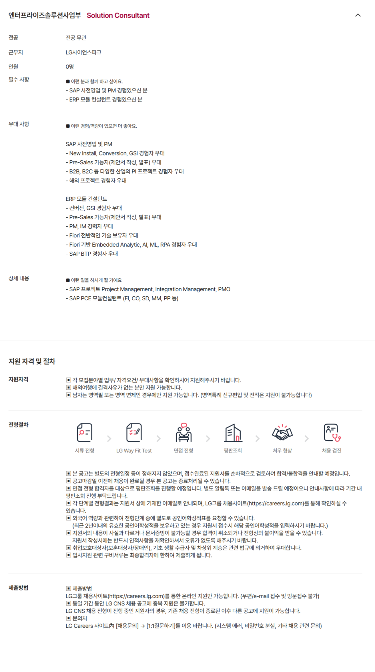 [LG CNS] SAP ¸ðµâ ÄÁ¼³ÅÏÆ® ºÐ¾ß ¸ðÁý(°æ·Â)