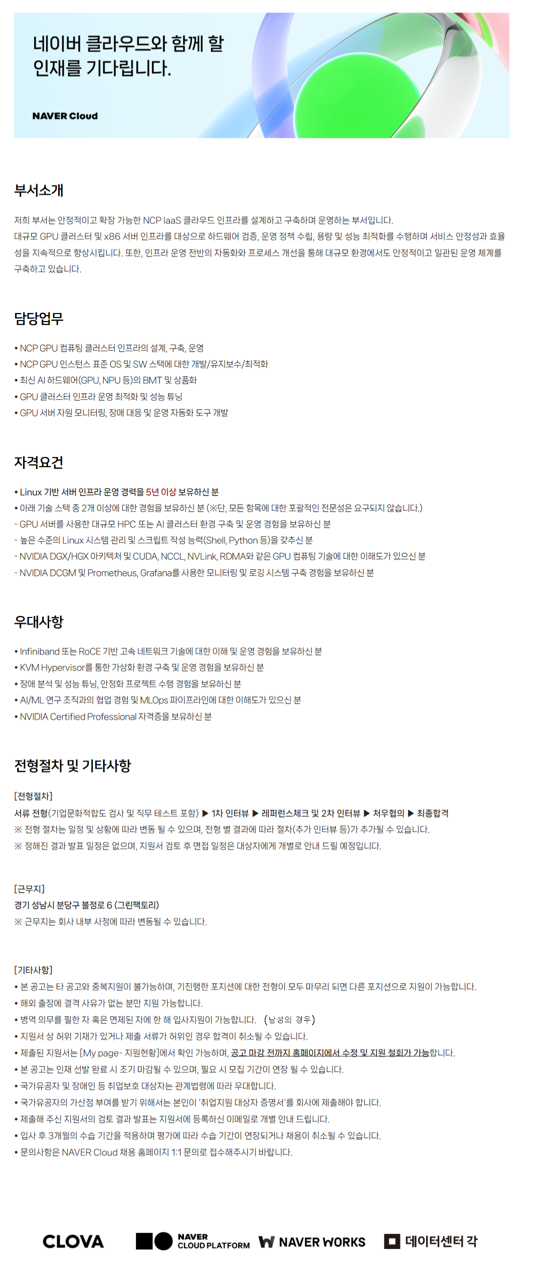 [NAVER Cloud] GPUaaS Infra Engineer (°æ·Â)