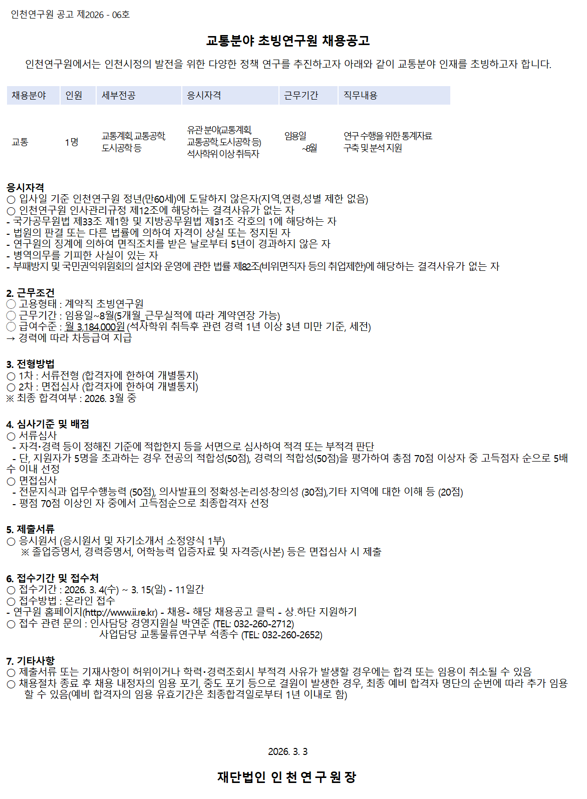 ÀÎõ¿¬±¸¿ø °ø°í Á¦2026 - 06È£
