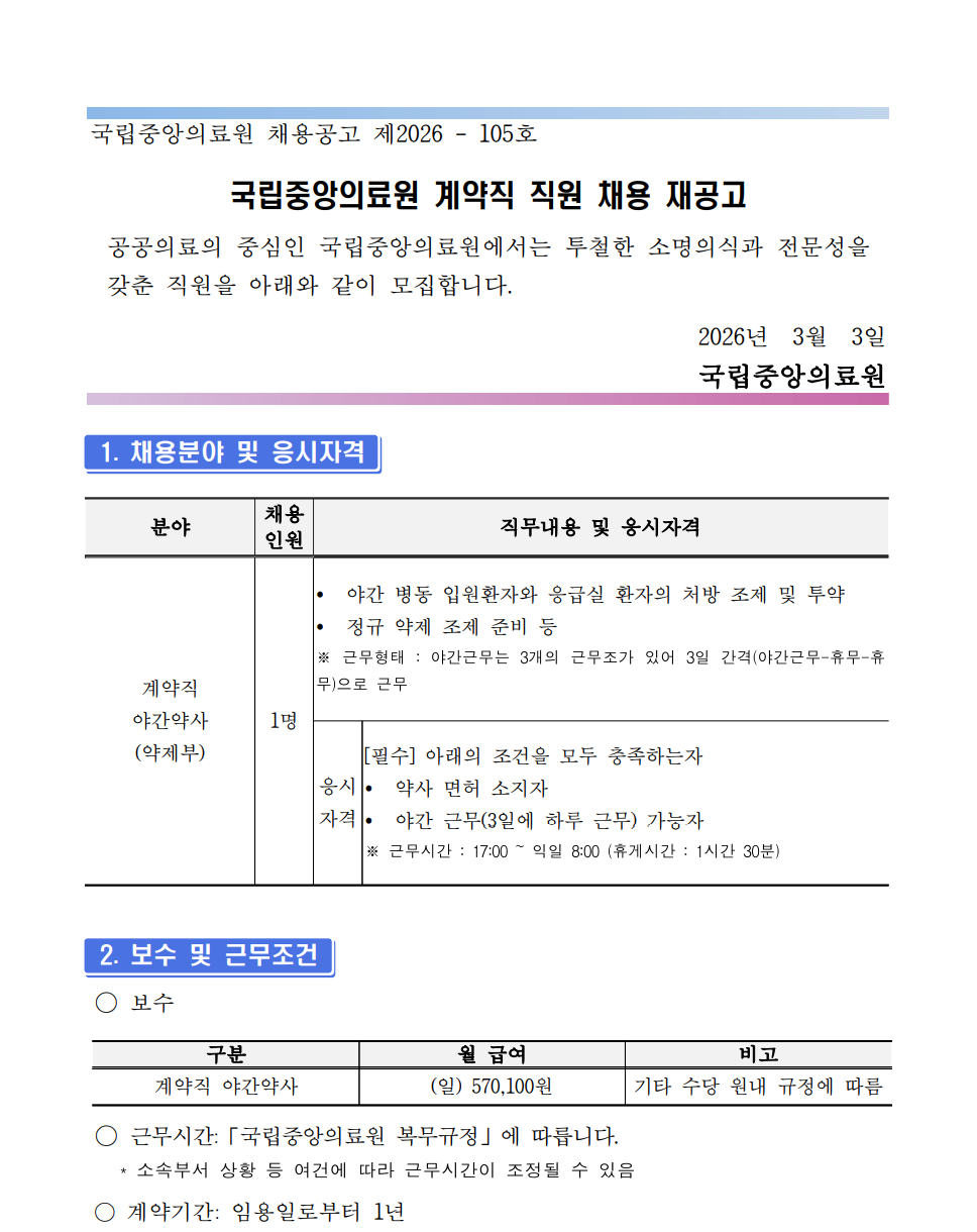 °ø°øÀÇ·áÀÇ Áß½ÉÀÎ ±¹¸³Áß¾ÓÀÇ·á¿ø¿¡¼´Â ÅõöÇÑ ¼Ò¸íÀǽİú Àü¹®¼ºÀ»°®Ãá Á÷¿øÀ» ¾Æ·¡¿Í °°ÀÌ ¸ðÁýÇÕ´Ï´Ù. 2026³â 3¿ù 3Àϱ¹¸³Áß¾ÓÀÇ·á¿ø1. ä¿ëºÐ¾ß ¹× ÀÀ½ÃÀÚ°Ý