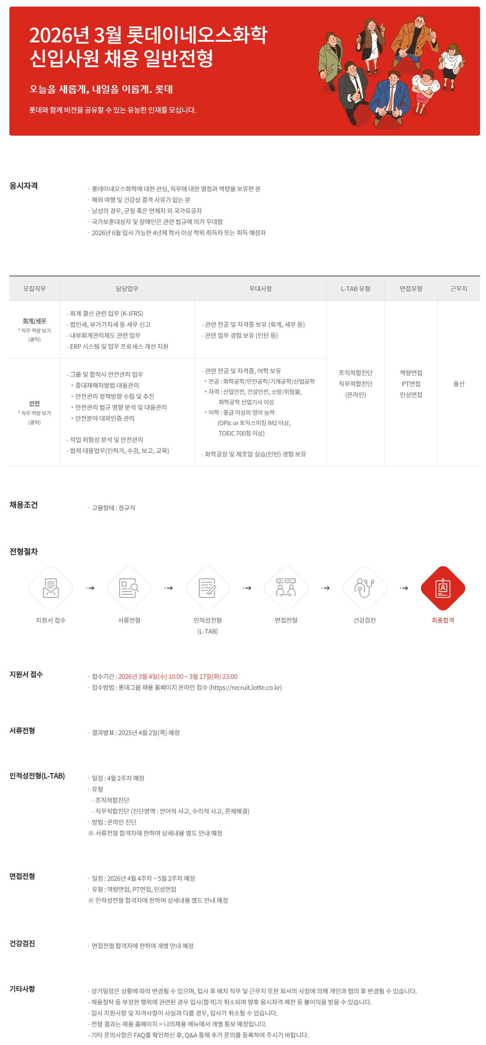2026³â 3¿ù ·Ôµ¥À̳׿À½ºÈÇÐ ½ÅÀÔ»ç¿ø ä¿ë ÀϹÝÀüÇü