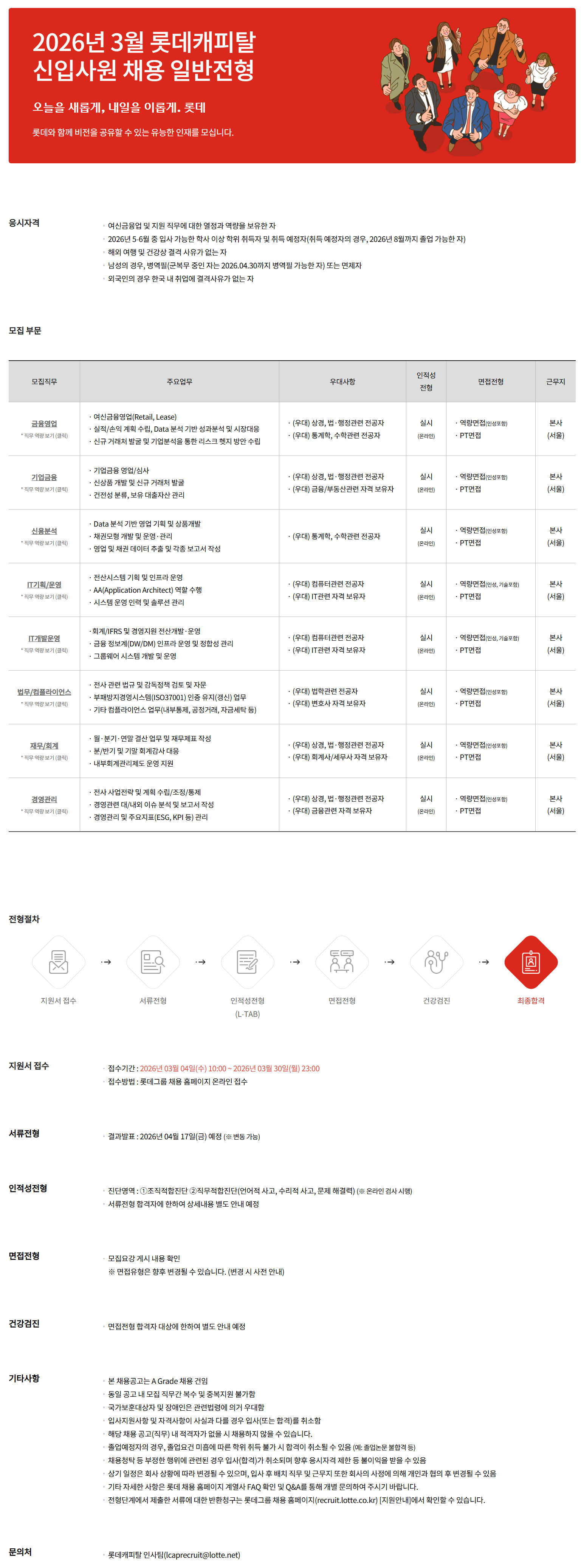2026³â 3¿ù ·Ôµ¥Ä³ÇÇÅ» ½ÅÀÔ»ç¿ø ä¿ë ÀϹÝÀüÇü