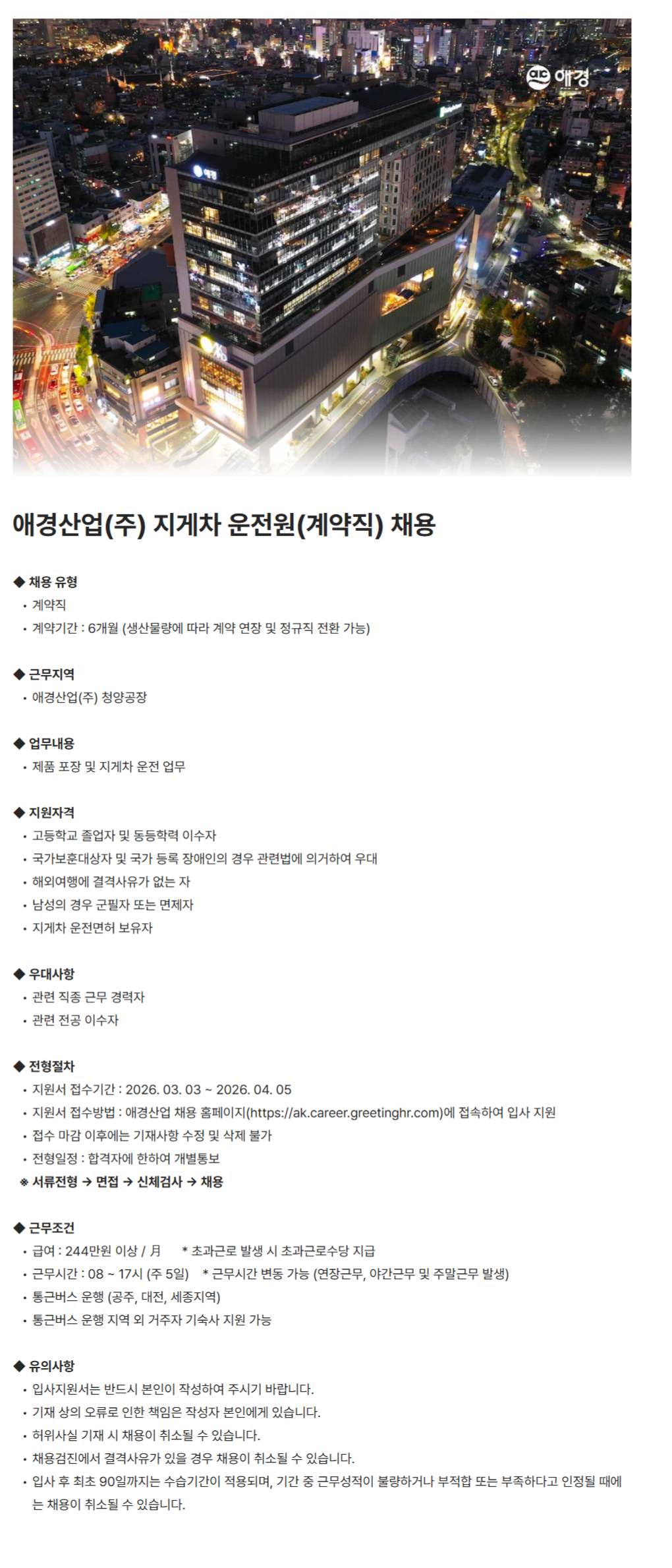 ¾Ö°æ»ê¾÷(ÁÖ) Áö°ÔÂ÷ ¿îÀü¿ø(°è¾àÁ÷) ä¿ë