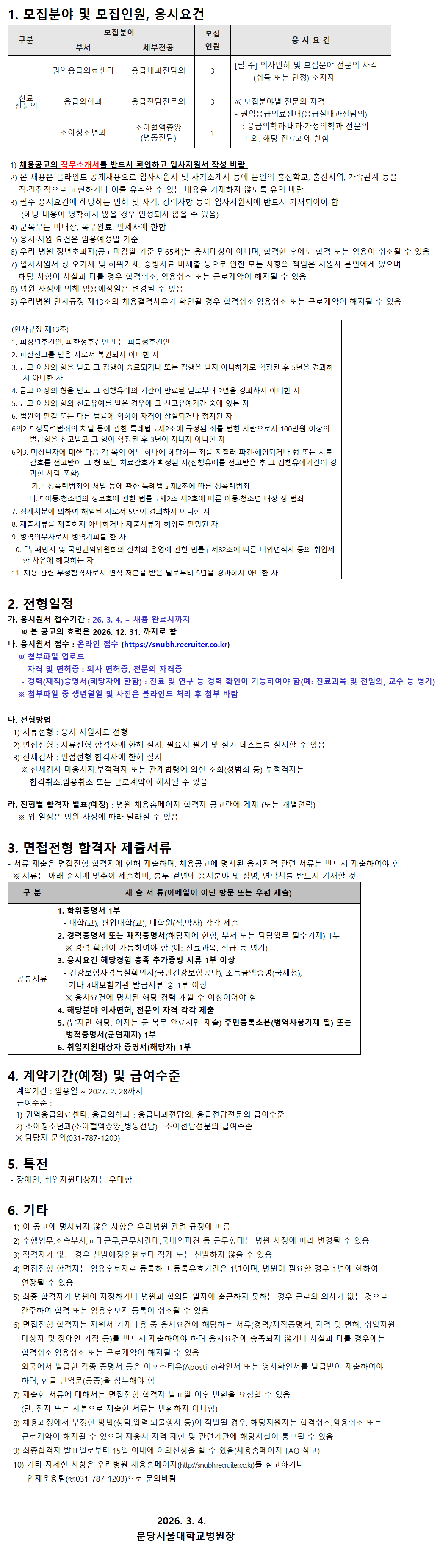 10) ±âŸ ÀÚ¼¼ÇÑ »çÇ×Àº ¿ì¸®º´¿ø ä¿ëȨÆäÀÌÁö(http://snubh.recruiter.co.kr)¸¦ Âü°íÇϰųª