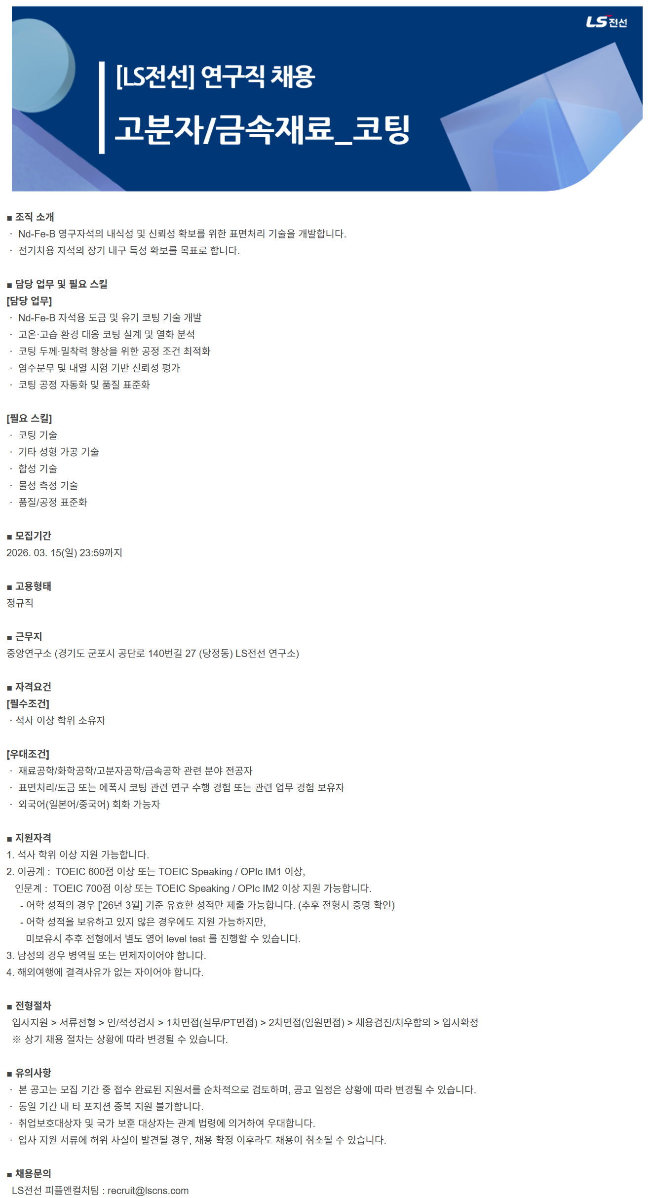 ¤ý º» °ø°í´Â ¸ðÁý ±â°£ Áß Á¢¼ö ¿Ï·áµÈ Áö¿ø¼¸¦ ¼øÂ÷ÀûÀ¸·Î °ËÅäÇϸç, °ø°í ÀÏÁ¤Àº »óȲ¿¡ µû¶ó º¯°æµÉ ¼ö ÀÖ½À´Ï´Ù.