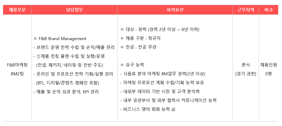 - ½ÄÀ½·á ºÐ¾ß ¸¶ÄÉÆÃ BM¾÷¹« °æ·Â(2³â ÀÌ»ó)