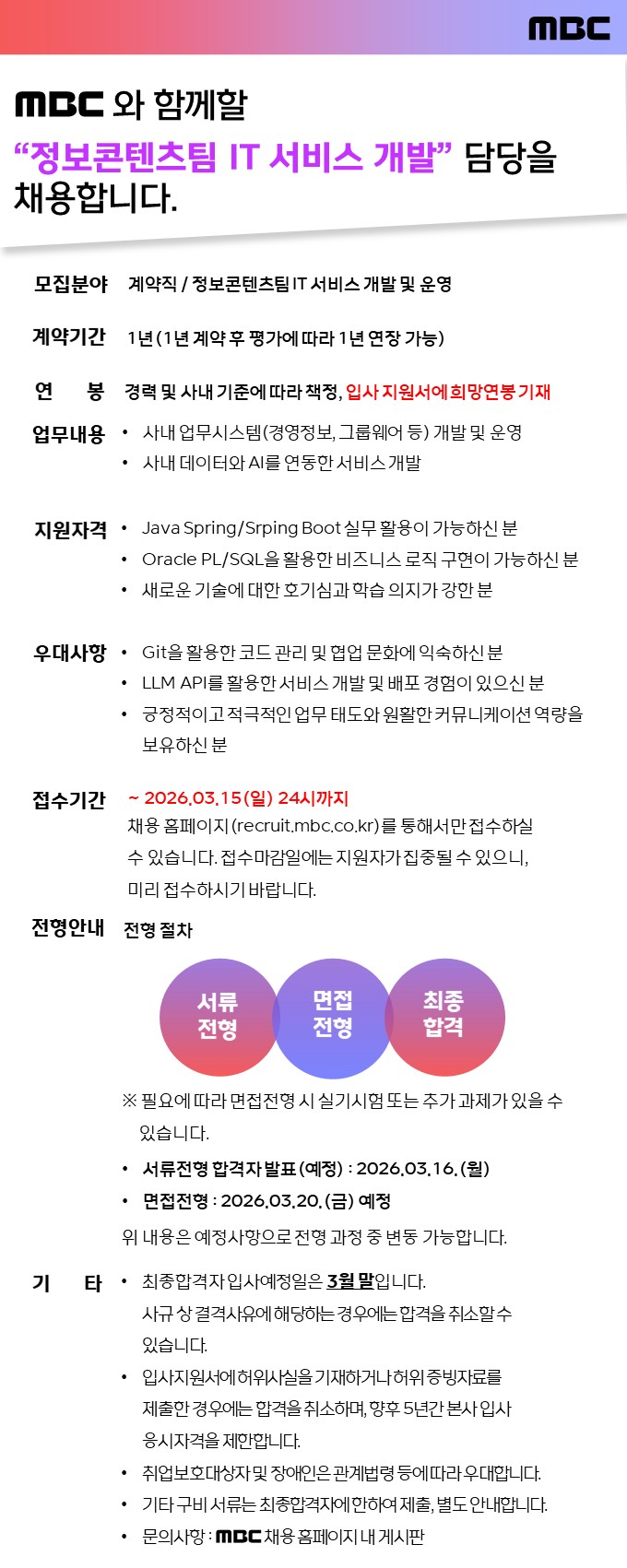 MBC Á¤º¸ÄÜÅÙÃ÷ÆÀ IT ¼ºñ½º °³¹ß ´ã´ç ¸ðÁý