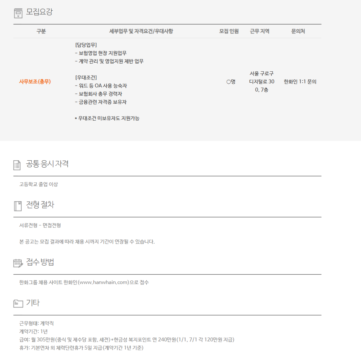 ÇÑȼÕÇØº¸Çè(ÁÖ) °è¾àÁ÷ ä¿ë - Àü¼Ó¿µ¾÷ºÎ¹® ä¿ë(¼¿ï)