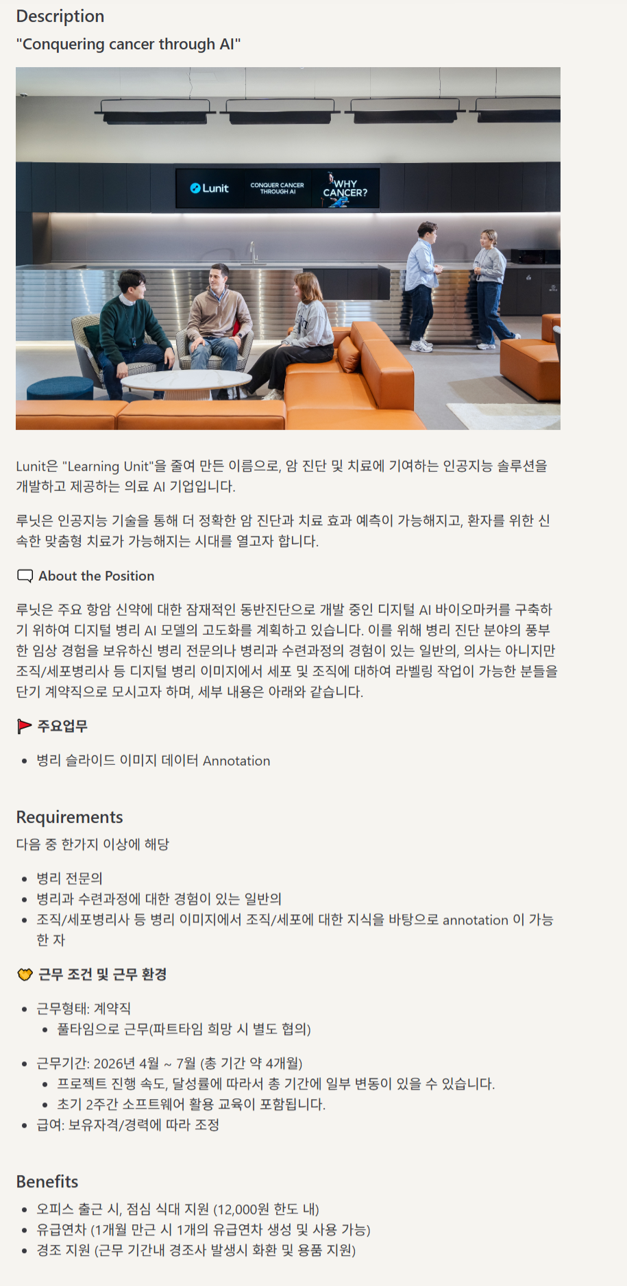 LunitÀº "Learning Unit"À» ÁÙ¿© ¸¸µç À̸§À¸·Î, ¾Ï Áø´Ü ¹× Ä¡·á¿¡ ±â¿©ÇÏ´Â ÀΰøÁö´É ¼Ö·ç¼ÇÀ» °³¹ßÇϰí Á¦°øÇÏ´Â ÀÇ·á AI ±â¾÷ÀÔ´Ï´Ù.