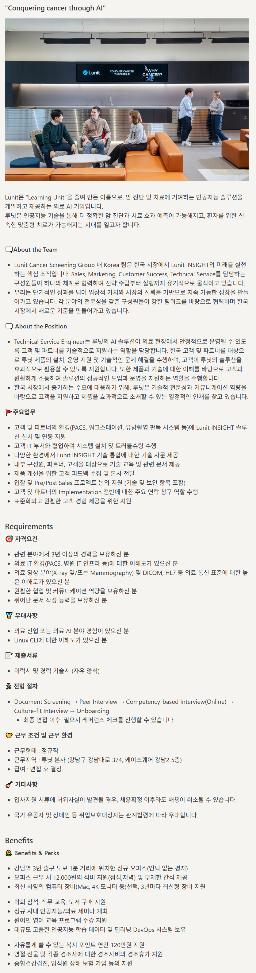 Technical Service Engineer´Â ·ç´ÖÀÇ AI ¼Ö·ç¼ÇÀÌ ÀÇ·á ÇöÀå¿¡¼ ¾ÈÁ¤ÀûÀ¸·Î ¿î¿µµÉ ¼ö ÀÖµµ·Ï °í°´ ¹× ÆÄÆ®³Ê¸¦ ±â¼úÀûÀ¸·Î Áö¿øÇÏ´Â ¿ªÇÒÀ» ´ã´çÇÕ´Ï´Ù. Çѱ¹ °í°´ ¹× ÆÄÆ®³Ê¸¦ ´ë»óÀ¸·Î ·ç´Ö Á¦Ç°ÀÇ ¼³Ä¡, ¿î¿µ Áö¿ø ¹× ±â¼úÀûÀÎ ¹®Á¦ ÇØ°áÀ» ¼öÇàÇϸç, °í°´ÀÌ ·ç´ÖÀÇ ¼Ö·ç¼ÇÀ» È¿°úÀûÀ¸·Î Ȱ¿ëÇÒ ¼ö ÀÖµµ·Ï Áö¿øÇÕ´Ï´Ù. ¶ÇÇÑ Á¦Ç°°ú ±â¼ú¿¡ ´ëÇÑ ÀÌÇØ¸¦ ¹ÙÅÁÀ¸·Î °í°´°ú ¿øÈ°ÇÏ°Ô ¼ÒÅëÇÏ¸ç ¼Ö·ç¼ÇÀÇ ¼º°øÀûÀÎ µµÀÔ°ú ¿î¿µÀ» Áö¿øÇÏ´Â ¿ªÇÒÀ» ¼öÇàÇÕ´Ï´Ù.