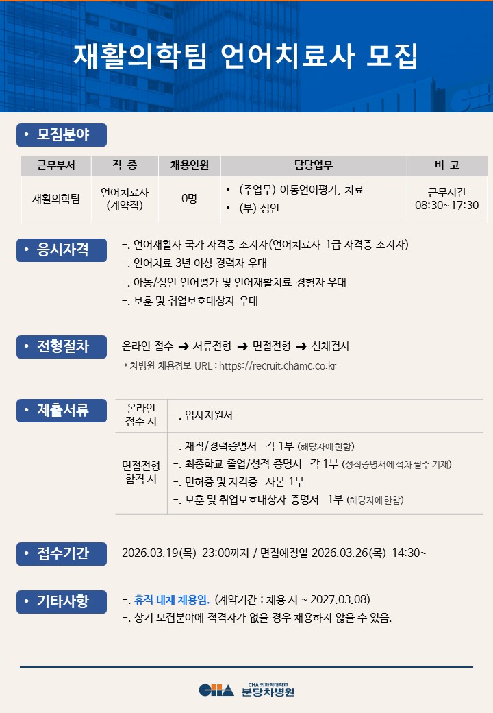 [ºÐ´çÂ÷º´¿ø] ÀçȰÀÇÇÐÆÀ ¾ð¾îÄ¡·á»ç ¸ðÁý