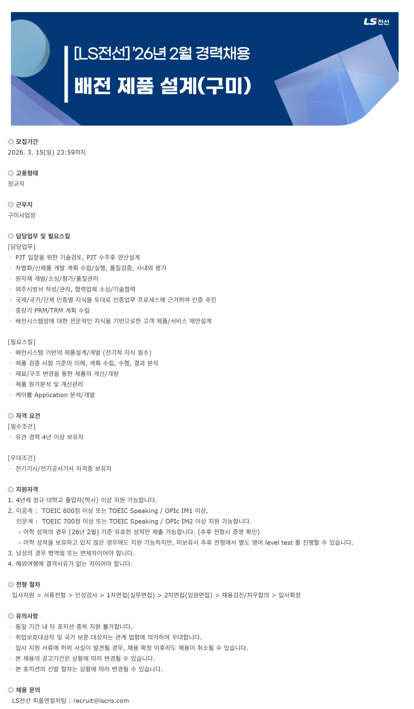 [LSÀü¼±] ¹èÀüÁ¦Ç°¼³°è(±¸¹Ì) °æ·Â ä¿ë ('26³â 2¿ù)