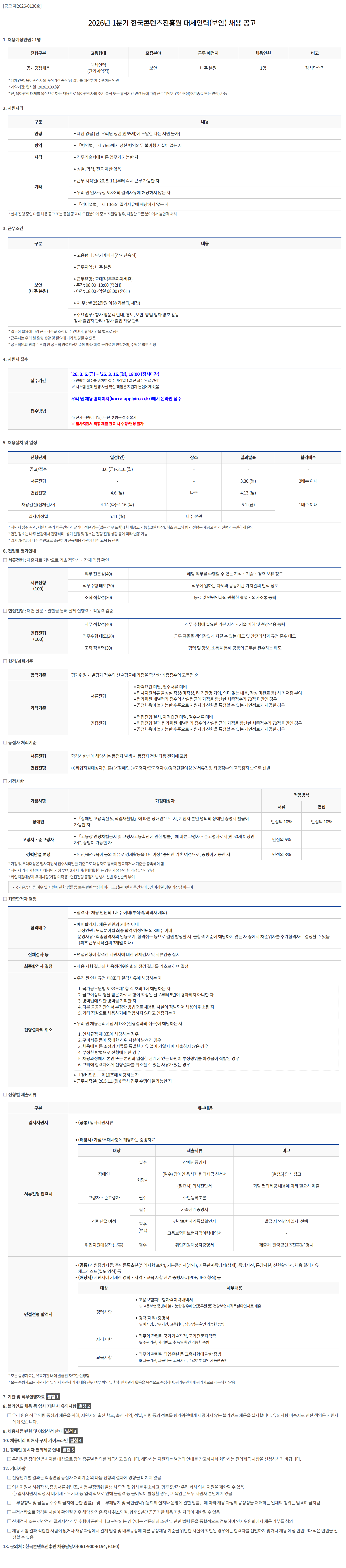2026³â 1ºÐ±â Çѱ¹ÄÜÅÙÃ÷ÁøÈï¿ø ´ëüÀηÂ(º¸¾È) ä¿ë °ø°í
