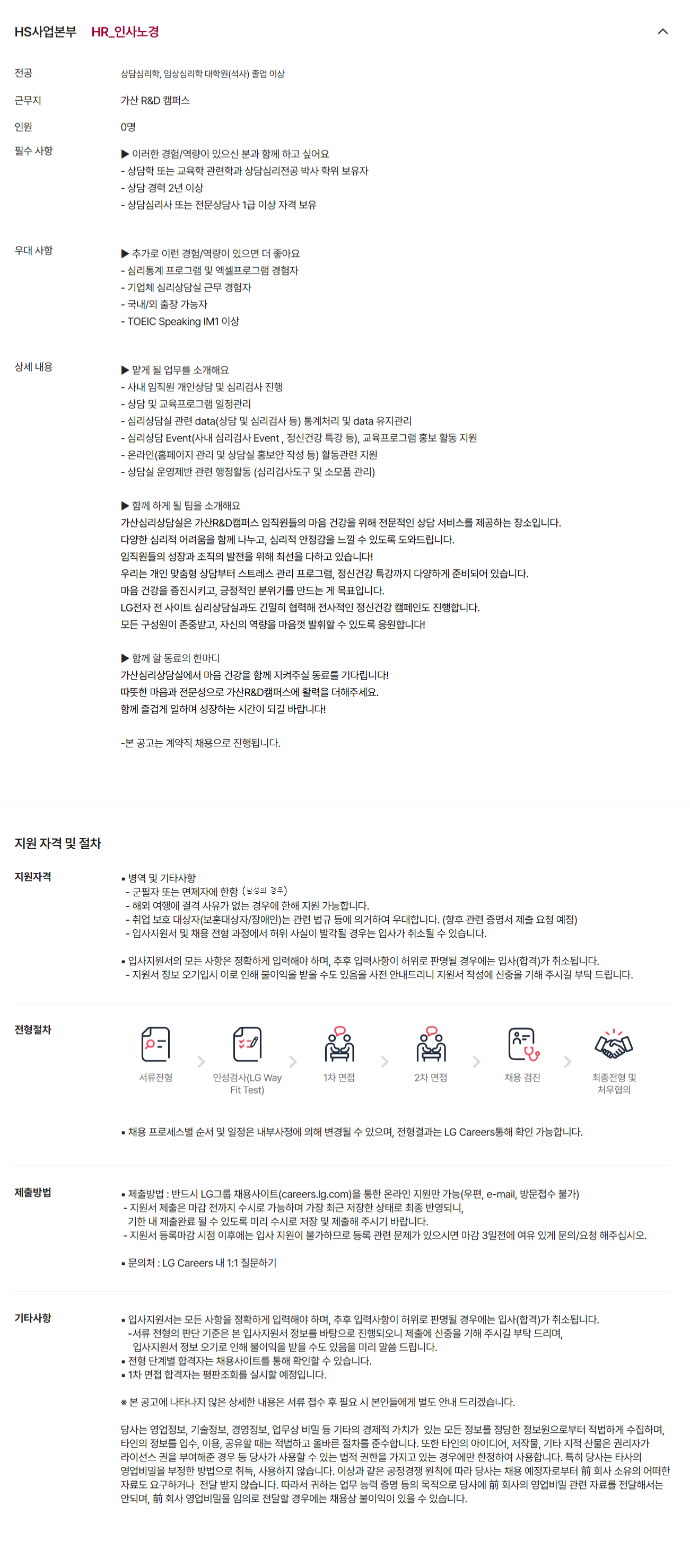 [HSº»ºÎ] LGÀüÀÚ °¡»ê R&DÄ·ÆÛ½º ½É¸®»ó´ã»ç ä¿ë(°è¾àÁ÷)