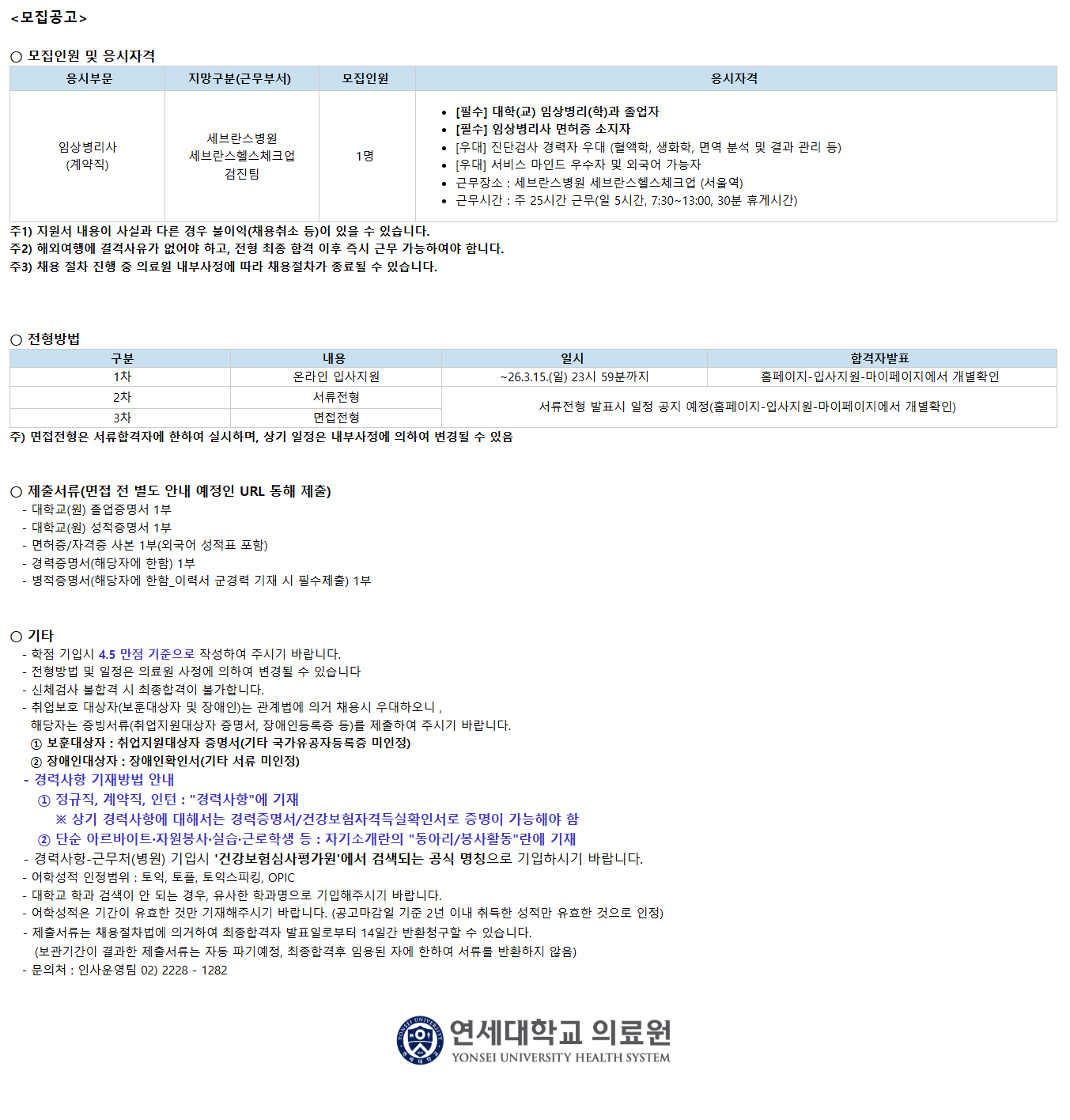 ÁÖ3) ä¿ë ÀýÂ÷ ÁøÇà Áß ÀÇ·á¿ø ³»ºÎ»çÁ¤¿¡ µû¶ó ä¿ëÀýÂ÷°¡ Á¾·áµÉ ¼ö ÀÖ½À´Ï´Ù.