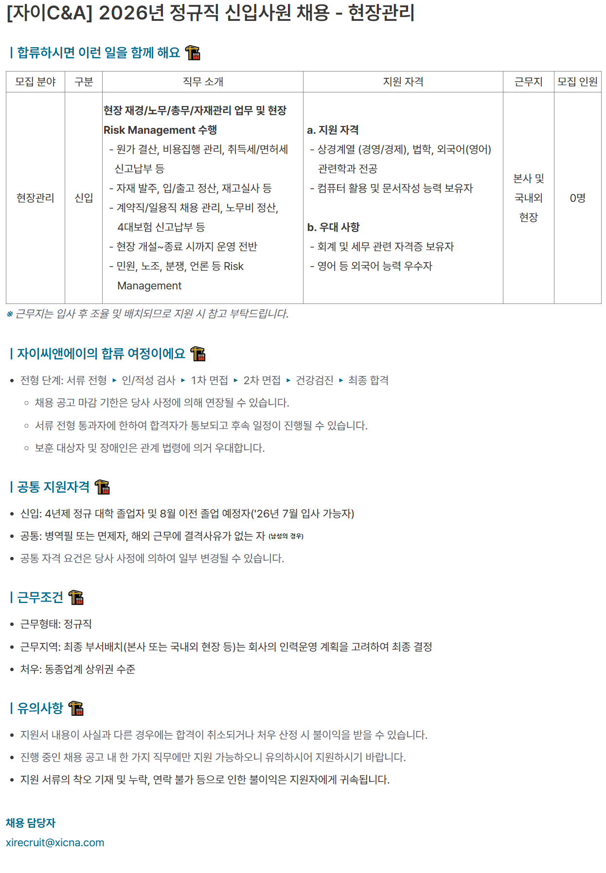 [ÀÚÀÌC&A] 2026³â Á¤±ÔÁ÷ ½ÅÀÔ»ç¿ø ä¿ë - ÇöÀå°ü¸®
