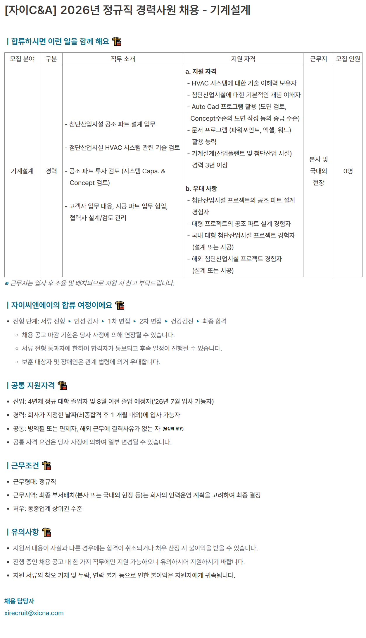 [ÀÚÀÌC&A] 2026³â Á¤±ÔÁ÷ °æ·Â»ç¿ø ä¿ë - ±â°è¼³°è
