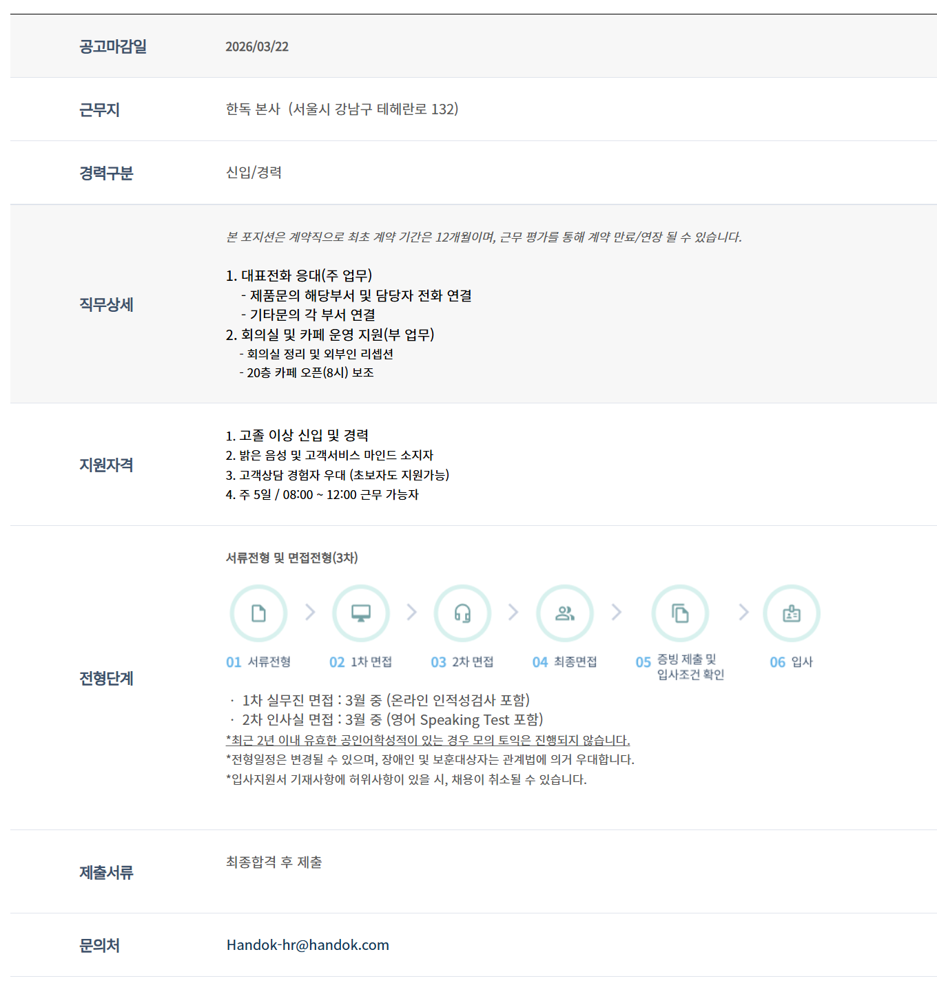 º» Æ÷Áö¼ÇÀº °è¾àÁ÷À¸·Î ÃÖÃÊ °è¾à ±â°£Àº 12°³¿ùÀ̸ç, ±Ù¹« Æò°¡¸¦ ÅëÇØ °è¾à ¸¸·á/¿¬Àå µÉ ¼ö ÀÖ½À´Ï´Ù.