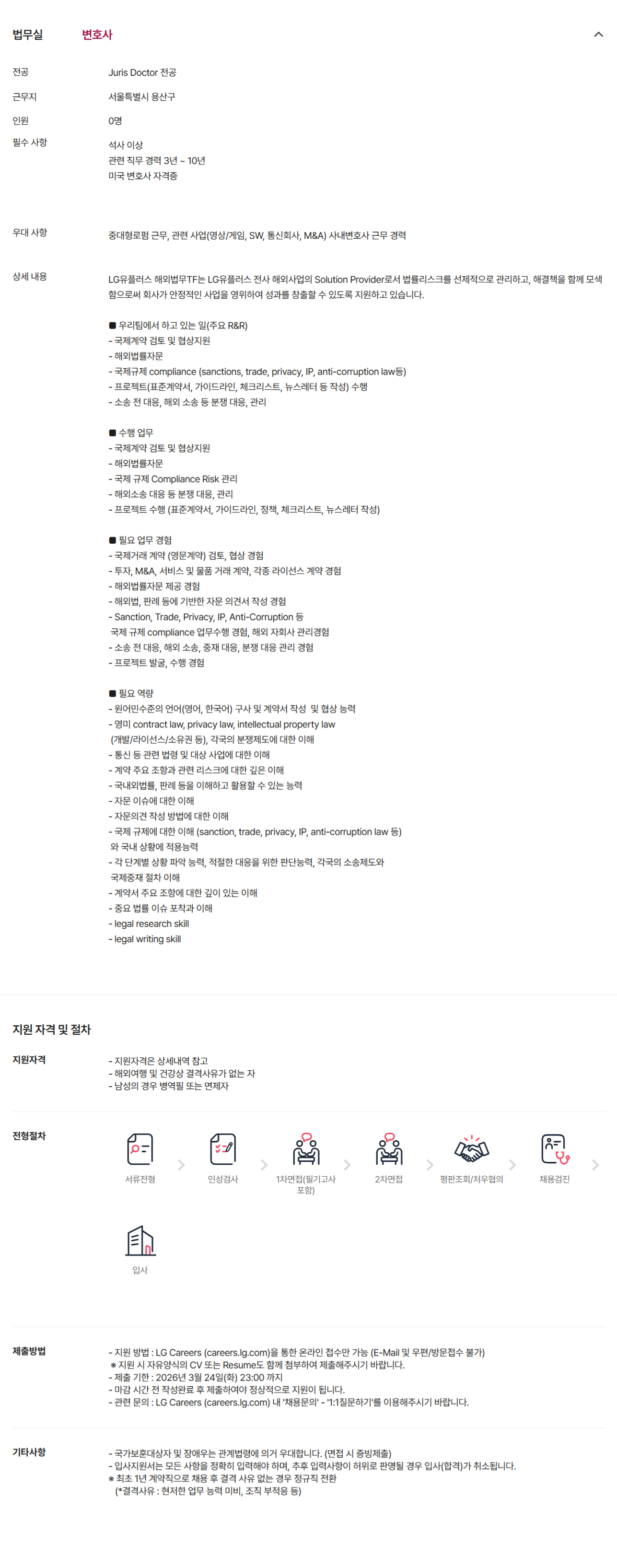 Áß´ëÇü·ÎÆß ±Ù¹«, °ü·Ã »ç¾÷(¿µ»ó/°ÔÀÓ, SW, Åë½Åȸ»ç, M&A) »ç³»º¯È£»ç ±Ù¹« °æ·Â