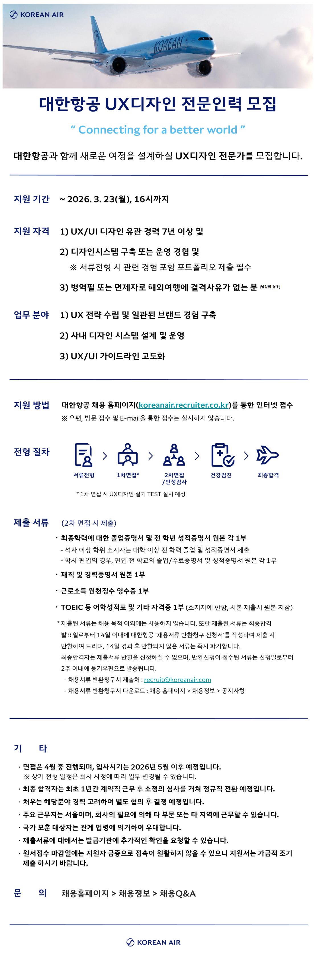 2026³â ´ëÇÑÇ×°ø UXµðÀÚÀÎ Àü¹®Àη ¸ðÁý
