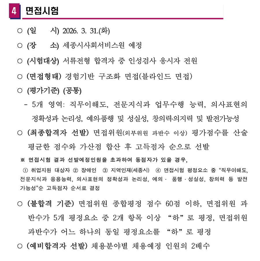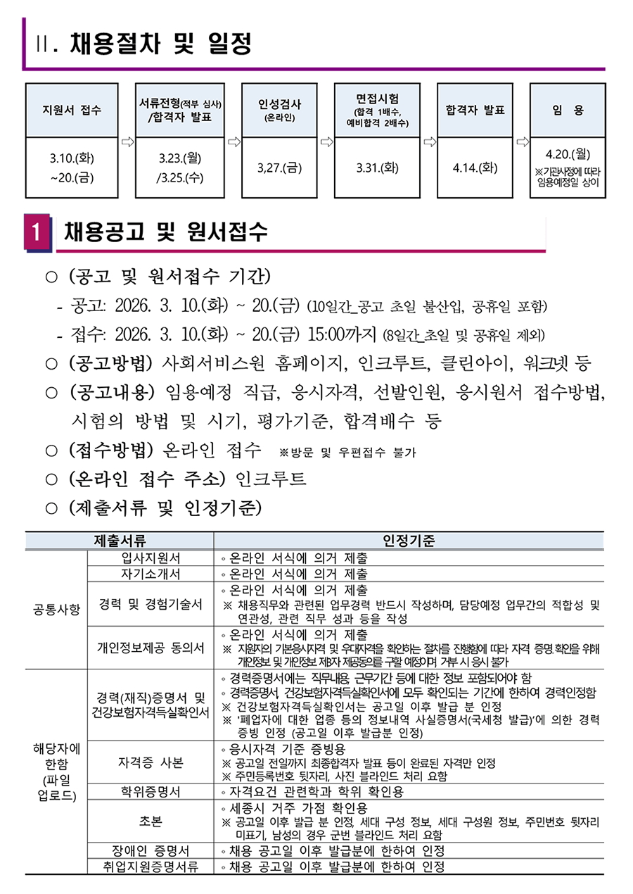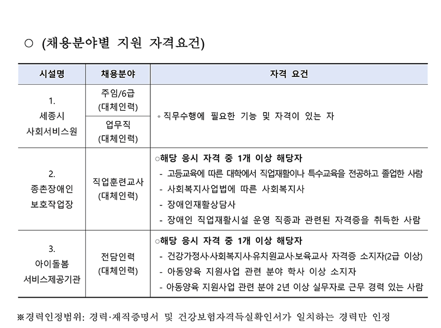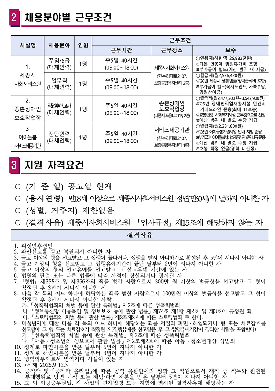 2026³â ¼¼Á¾½Ã»çȸ¼ºñ½º¿ø Á¦2Â÷ º»ºÎ ¹× ¼Ò¼Ó½Ã¼³ À°¾ÆÈÞÁ÷ ´ëüÀη ä¿ë °èȹ (¾È) ¼¼Á¾Æ¯º°ÀÚÄ¡½Ã »çȸ¼ºñ½º¿ø¿¡¼´Â NCS±â¹Ý ºí¶óÀεå ä¿ëÀ¸·Î Àü¹®¼º°ú ¿ª·®À» °®Ãá ºÐµéÀ» ´ÙÀ½°ú °°ÀÌ ¸ðÁý ÇÏ¿À´Ï ¸¹Àº Áö¿ø ¹Ù¶ø´Ï´Ù. 2026³â 3¿ù 10ÀÏ ¼¼Á¾Æ¯º°ÀÚÄ¡½Ã »çȸ¼ºñ½º¿øÀå