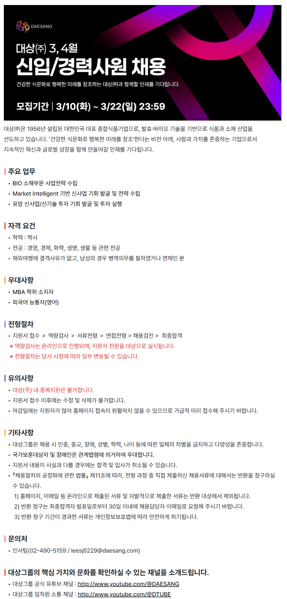 ´ë»ó¢ßÀº 1956³â ¼³¸³µÈ ´ëÇѹα¹ ´ëÇ¥ Á¾ÇÕ½Äǰ±â¾÷À¸·Î, ¹ßÈ¿¡¤¹ÙÀÌ¿À ±â¼úÀ» ±â¹ÝÀ¸·Î ½Äǰ°ú ¼ÒÀç »ê¾÷À»