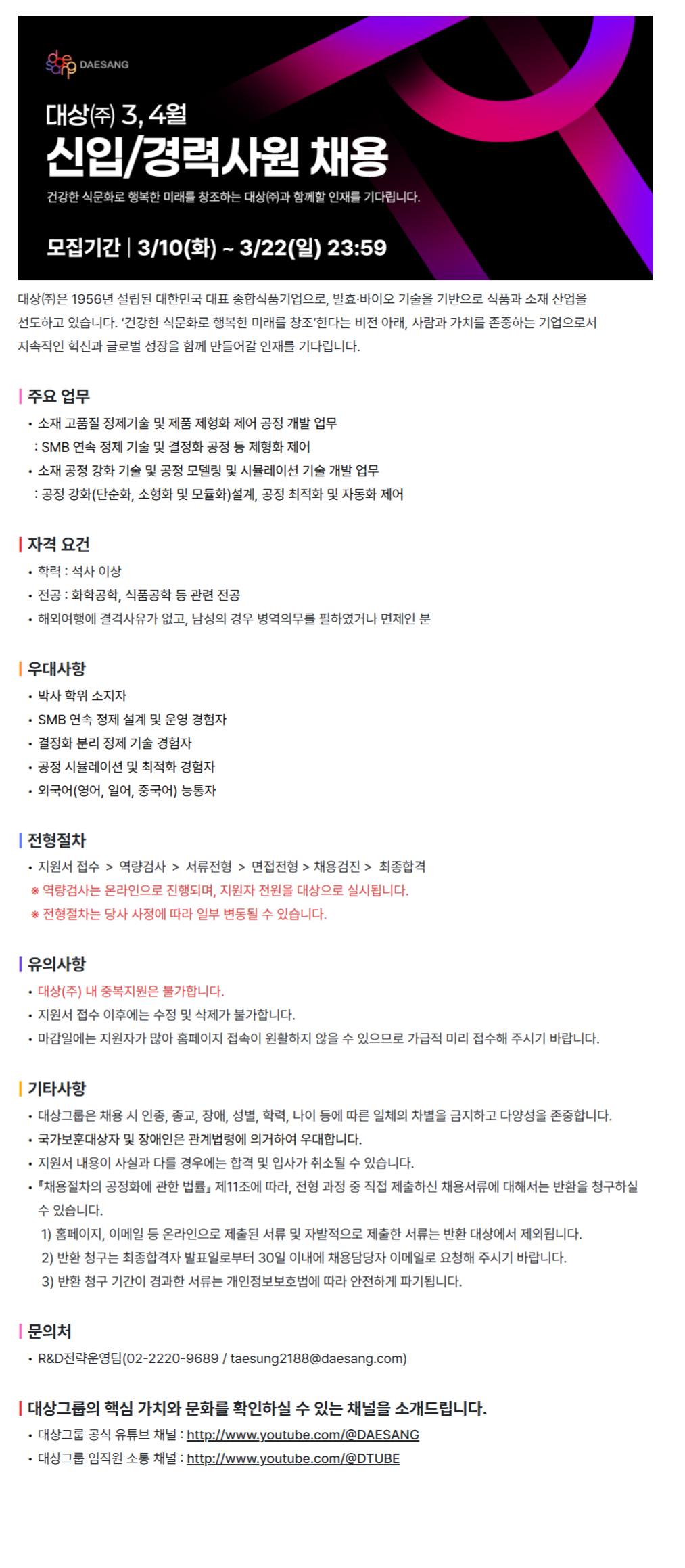 [´ë»ó(ÁÖ)] R&DºÎ¹® BIO¿¬±¸(Á¤Á¦ ¿¬±¸) ½ÅÀÔ»ç¿ø ä¿ë