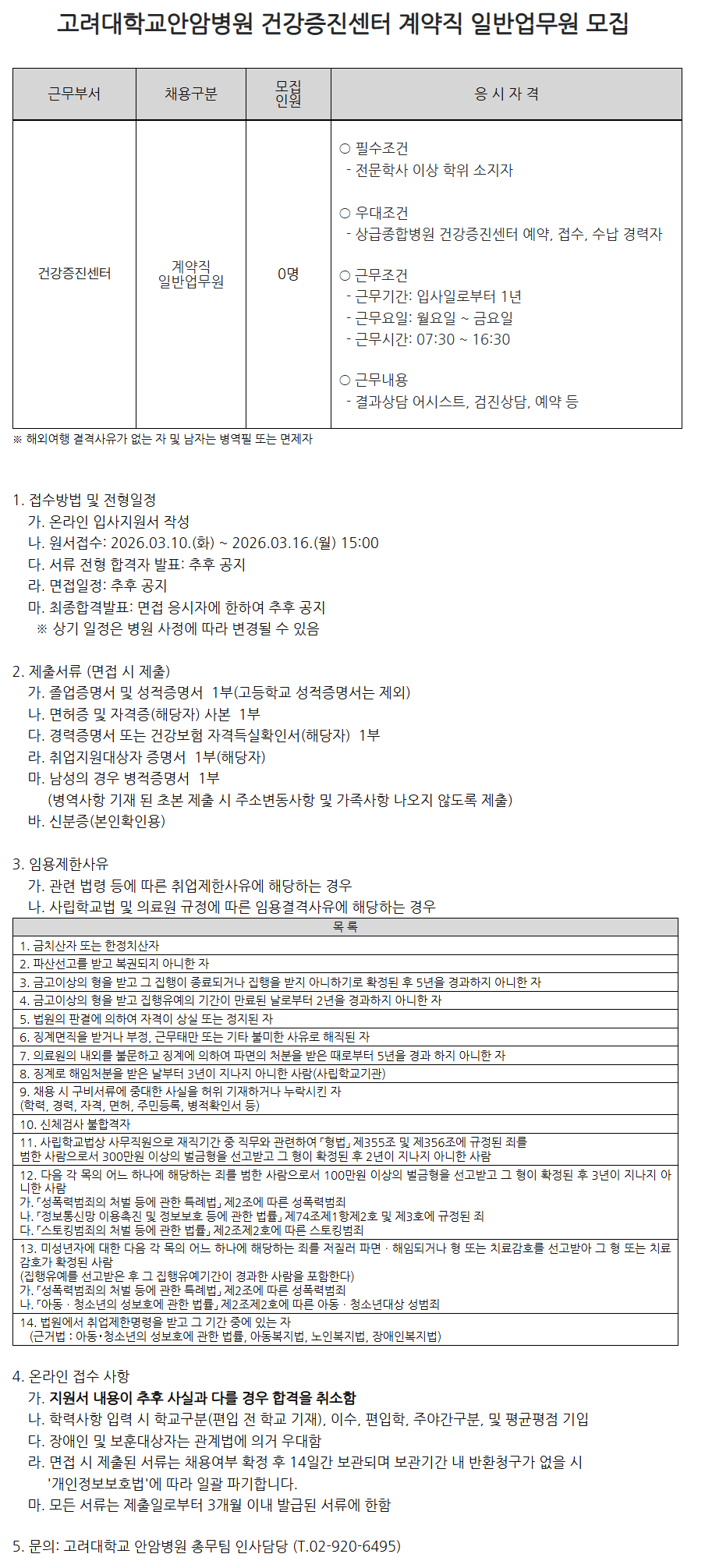 °í·Á´ëÇб³¾È¾Ïº´¿ø °Ç°ÁõÁø¼¾ÅÍ °è¾àÁ÷ ÀϹݾ÷¹«¿ø ¸ðÁý