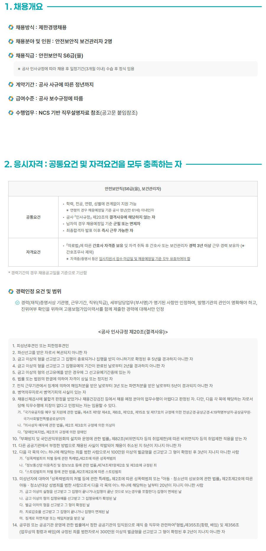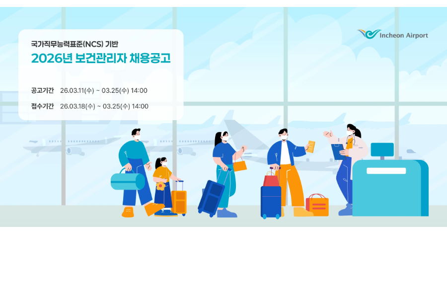 Incheon Airport ±¹°¡Á÷¹«´É·ÂÇ¥ÁØ(NCS) ±â¹Ý 2026³â º¸°Ç°ü¸®ÀÚ Ã¤¿ë°ø°í °ø°í±â°£ 26.03.11(¼ö) ~ 03.25(¼ö) 14:00 Á¢¼ö±â°£ 26.03.18(¼ö) ~ 03.25(¼ö) 14:00 1 ä¿ë°³¿ä ä¿ë¹æ½Ä : Á¦ÇѰæÀïä¿ë ä¿ëºÐ¾ß ¹× Àοø : ¾ÈÀüº¸¾ÈÁ÷ º¸°Ç°ü¸®ÀÚ 2¸í ä¿ëÁ÷±Þ : ¾ÈÀüº¸¾ÈÁ÷ S6±Þ(À») ¡Ø °ø»ç Àλç±ÔÁ¤¿¡ µû¶ó ä¿ë ÈÄ ÀÏÁ¤±â°£(3°³¿ù À̳») ¼ö½À ÈÄ Á¤½Ä ÀÓ¿ë °è¾à±â°£ : °ø»ç »ç±Ô¿¡ µû¸¥ Á¤³â±îÁö ±Þ¿©¼öÁØ : °ø»ç º¸¼ö±ÔÁ¤¿¡ µû¸§ ¼öÇà¾÷¹« : NCS ±â¹Ý Á÷¹«¼³¸íÀÚ·á ÂüÁ¶(°ø°í¹® ºÙÀÓÂüÁ¶) 2. ÀÀ½ÃÀÚ°Ý : °øÅë¿ä°Ç ¹× ÀÚ°Ý¿ä°ÇÀ» ¸ðµÎ ÃæÁ·ÇÏ´Â ÀÚ ¾ÈÀüº¸¾ÈÁ÷(S6±Þ(À»), º¸°Ç°ü¸®ÀÚ) 8 ÇзÂ, Àü°ø, ¿¬·É, ¼ºº°¿¡ °ü°è¾øÀÌ Áö¿ø °¡´É ¡Ø ¿¬·ÉÀÇ °æ¿ì ä¿ë¿¹Á¤ÀÏ ±âÁØ °ø»ç Á¤³â(¸¸ 61¼¼) À̳»ÀÎÀÚ °øÅë¿ä°Ç ¡¤ °ø»ç ¡¸Àλç±ÔÁ¤¡¹ Á¦20Á¶ÀÇ °á°Ý»çÀ¯¿¡ ÇØ´çÇÏÁö ¾Ê´Â ÀÚ ¡¤ ³²ÀÚÀÇ °æ¿ì ä¿ë¿¹Á¤ÀÏ ±âÁØ ±ºÇÊ ¶Ç´Â ¸éÁ¦ÀÚ ¡¤ ÃÖÁ¾ÇÕ°ÝÀÚ ¹ßÇ¥ ÀÌÈÄ Áï½Ã ±Ù¹« °¡´ÉÇÑ ÀÚ ¡¤ ¡¸ÀÇ·á¹ý¡¹¿¡ µû¸¥ °£È£»ç ÀÚ°ÝÁõ º¸À¯ ¹× ÀÚ°Ý Ãëµæ ÈÄ °£È£»ç ¶Ç´Â º¸°Ç°ü¸®ÀÚ °æ·Â 3³â ÀÌ»ó ±Ù¹« °æ·Â º¸À¯ÀÚ ¡Ø ÀÚ°Ý¿ä°Ç °£È£Á¶¹«»ç Á¦¿Ü) ¡Ø ÀÚ°ÝÁõ/Áõ¸í¼ µîÀº ÀÔ»çÁö¿ø¼ Á¢¼ö ¸¶°¨ÀÏ ¹× ä¿ë¿¹Á¤ÀÏ ±âÁØ ¸ðµÎ À¯È¿ÇÏ¿©¾ß ÇÔ * °æ·Â±â°£ÀÇ °æ¿ì ä¿ë°ø°íÀÏÀ» ±âÁØÀ¸·Î ±â»êÇÔ °æ·ÂÀÎÁ¤ ¿ä°Ç ¹× ¹üÀ§ ¨ç °æ·Â(ÀçÁ÷)Áõ¸í¼»ó ±â°ü¸í, ±Ù¹«±â°£, Á÷À§(Á÷±Þ), ¼¼ºÎ´ã´ç¾÷¹«(ºÎ¼¸í)°¡ ¸í±âµÈ »çÇ׸¸ ÀÎÁ¤Çϸç, ¹ßÇà±â°üÀÇ °üÀÎÀÌ ¸íÈ®ÇØ¾ß Çϰí, ÁøÀ§¿©ºÎ È®ÀÎÀ» À§ÇÏ¿© °í¿ëº¸Çè°¡ÀÔÀ̷¼¸¦ ÇÔ²² Á¦ÃâÇÑ °æ·Â¿¡ ´ëÇØ¼¸¸ ÀÎÁ¤ <°ø»ç Àλç±ÔÁ¤ Á¦20Á¶(°á°Ý»çÀ¯) > 1. ÇǼº³âÈİßÀÎ ¶Ç´Â ÇÇÇÑÁ¤ÈİßÀÎ 2. ÆÄ»ê¼±°í¸¦ ¹ÞÀº Àڷμ º¹±ÇµÇÁö ¾Æ´ÏÇÑ ÀÚ 3. ±Ý°í ÀÌ»óÀÇ ÇüÀ» ¼±°í¹Þ°í ±× ÁýÇàÀÌ Á¾·áµÇ°Å³ª ÁýÇàÀ» ¹ÞÁö ¾Æ´ÏÇϱâ·Î È®Á¤µÈ ÈÄ 5³âÀ» °æ°úÇÏÁö ¾Æ´ÏÇÑ ÀÚ 4. ±Ý°í ÀÌ»óÀÇ ÇüÀ» ¼±°í¹Þ°í ±× ÁýÇàÀ¯¿¹ÀÇ ±â°£ÀÌ ¿Ï·áµÈ ³¯·ÎºÎÅÍ 2³âÀ» °æ°úÇÏÁö ¾Æ´ÏÇÑ ÀÚ 5. ±Ý°í ÀÌ»óÀÇ ÇüÀÇ ¼±°íÀ¯¿¹¸¦ ¹ÞÀº °æ¿ì¿¡ ±× ¼±°íÀ¯¿¹±â°£Áß¿¡ ÀÖ´Â ÀÚ 6. ¹ý·ü ¶Ç´Â ¹ý¿øÀÇ ÆÇ°á¿¡ ÀÇÇÏ¿© ÀÚ°ÝÀÌ »ó½Ç ¶Ç´Â Á¤ÁöµÈ ÀÚ 7. ÀüÁ÷ ±Ù¹«±â°ü¿¡¼ ¡°è¿¡ ÀÇÇÏ¿© ÇØÀÓóºÐÀ» ¹ÞÀº ³¯·ÎºÎÅÍ 3³â ¶Ç´Â ÆÄ¸éóºÐÀ» ¹ÞÀº ³¯·ÎºÎÅÍ 5³âÀÌ °æ°úµÇÁö ¾Æ´ÏÇÑ ÀÚ 8. º´¿ªÀǹ«Àڷμ º´¿ª±âÇÇÀÇ »ç½ÇÀÌ ÀÖ´Â ÀÚ 9. ä¿ë½Åü°Ë»ç¿¡ ºÒÇÕ°Ý ÆÇÁ¤À» ¹Þ¾Ò°Å³ª ä¿ë°Ç°°ËÁø µî¿¡¼ ä¿ë ¿¹Á¤ ºÐ¾ßÀÇ ¾÷¹«¼öÇàÀÌ ¾î·Æ´Ù°í ÆÇÁ¤µÈ ÀÚ. ´Ù¸¸, ´ÙÀ½ °¢ ¸ñ¿¡ ÇØ´çÇÏ´Â Àڷμ ´çÇØ Á÷¹«¼öÇà¿¡ ÁöÀåÀÌ ¾ø´Ù°í ÀÎÁ¤µÇ´Â ÀÚ´Â ÀÓ¿ëÇÒ ¼ö ÀÖ´Ù. °¡. ¡¸±¹°¡À¯°øÀÚµî ¿¹¿ì ¹× Áö¿ø¿¡ °üÇÑ ¹ý·ü¡¹ Á¦4Á¶ Á¦1Ç× Á¦4È£, Á¦6È£, Á¦12È£, Á¦15È£ ¹× Á¦17È£ÀÇ ±ÔÁ¤¿¡ ÀÇÇÑ Àü»ó±º°æ¡¤°ø»ó±º°æ¡¤4.19Çõ¸íºÎ»óÀÚ¡¤°ø»ó°ø¹«¿ø¡¤ ±¹°¡»çȸ¹ßÀüƯº°°ø·Î»óÀÌÀÚ ³ª. ¡¸ÀÇ»ç»óÀÚ ¿¹¿ì¿¡ °üÇÑ ¹ý·ü¡¹ Á¦2Á¶ Á¦3È£ÀÇ ±ÔÁ¤¿¡ ÀÇÇÑ ÀÇ»óÀÚ ´Ù. ¡¸Àå¾ÖÀκ¹Áö¹ý¡¹ Á¦2Á¶ÀÇ ±ÔÁ¤¿¡ ÀÇÇÑ Àå¾ÖÀÎ 10. ¡¸ºÎÆÐ¹æÁö ¹× ±¹¹Î±ÇÀÍÀ§¿øÈ¸ÀÇ ¼³Ä¡¿Í ¿î¿µ¿¡ °üÇÑ ¹ý·ü¡¹ Á¦82Á¶(ºñÀ§¸éÁ÷ÀÚ µîÀÇ Ãë¾÷Á¦ÇÑ)¿¡ µû¸¥ ºñÀ§¸éÁ÷ÀÚ µîÀÇ Ãë¾÷Á¦ÇÑ Àû¿ëÀ» ¹Þ´Â ÀÚ 11. ´Ù¸¥ °ø°ø±â°ü¿¡¼ ºÎÁ¤ÇÑ ¹æ¹ýÀ¸·Î ä¿ëµÈ »ç½ÇÀÌ Àû¹ßµÇ¾î ä¿ëÀÌ Ãë¼ÒµÈ Áö 5³âÀÌ Áö³ªÁö ¾Æ´ÏÇÑ ÀÚ 12. ´ÙÀ½ °¢ ¸ñÀÇ ¾î´À Çϳª¿¡ ÇØ´çÇÏ´Â Á˸¦ ¹üÇÑ »ç¶÷À¸·Î¼ 100¸¸¿ø ÀÌ»óÀÇ ¹ú±ÝÇüÀ» ¼±°í¹Þ°í ±× ÇüÀÌ È®Á¤µÈ ÈÄ 3³âÀÌ Áö³ªÁö ¾Æ´ÏÇÑ »ç¶÷ °¡. ¡¸¼ºÆø·Â¹üÁËÀÇ Ã³¹ú µî¿¡ °üÇÑ Æ¯·Ê¹ý¡¹Á¦2Á¶¿¡ µû¸¥ ¼ºÆø·Â¹üÁË ³ª. ¡¸Á¤º¸Åë½Å¸Á ÀÌ¿ëÃËÁø ¹× Á¤º¸º¸È£ µî¿¡ °üÇÑ ¹ý·ü¡¹Á¦74Á¶Á¦1Ç×Á¦2È£ ¹× Á¦3È£¿¡ ±ÔÁ¤µÈ ÁË ´Ù. ¡¸½ºÅäÅ·¹üÁËÀÇ Ã³¹ú µî¿¡ °üÇÑ ¹ý·ü¡¹Á¦2Á¶Á¦2È£¿¡ µû¸¥ ½ºÅäÅ·¹üÁË 13. ¹Ì¼º³âÀÚ¿¡ ´ëÇÏ¿© ¡¸¼ºÆø·Â¹üÁËÀÇ Ã³¹ú µî¿¡ °üÇÑ Æ¯·Ê¹ý¡¹ Á¦2Á¶¿¡ µû¸¥ ¼ºÆø·Â¹üÁË ¶Ç´Â ¡¸¾Æµ¿ ¡¤ û¼Ò³âÀÇ ¼ºº¸È£¿¡ °üÇÑ ¹ý·ü¡¹ Á¦2Á¶Á¦2È£¿¡ µû¸¥ ¾Æµ¿ - û¼Ò³â´ë»ó ¼º¹üÁ˸¦ ¹üÇÑ »ç¶÷À¸·Î¼ ´ÙÀ½ °¢ ¸ñÀÇ ¾î´À Çϳª¿¡ ÇØ´çÇÏ´Â ³¯ºÎÅÍ 20³âÀÌ Áö³ªÁö ¾Æ´ÏÇÑ »ç¶÷ °¡. ±Ý°í ÀÌ»óÀÇ ½ÇÇüÀ» ¼±°í¹Þ°í ±× ÁýÇàÀÌ ³¡³ª°Å³ª(ÁýÇàÀÌ ³¡³ °ÍÀ¸·Î º¸´Â°æ¿ì¸¦ Æ÷ÇÔÇÑ´Ù) ÁýÇàÀÌ ¸éÁ¦µÈ ³¯ ³ª. ±Ý°í ÀÌ»óÀÇ ÇüÀÇ ÁýÇàÀ