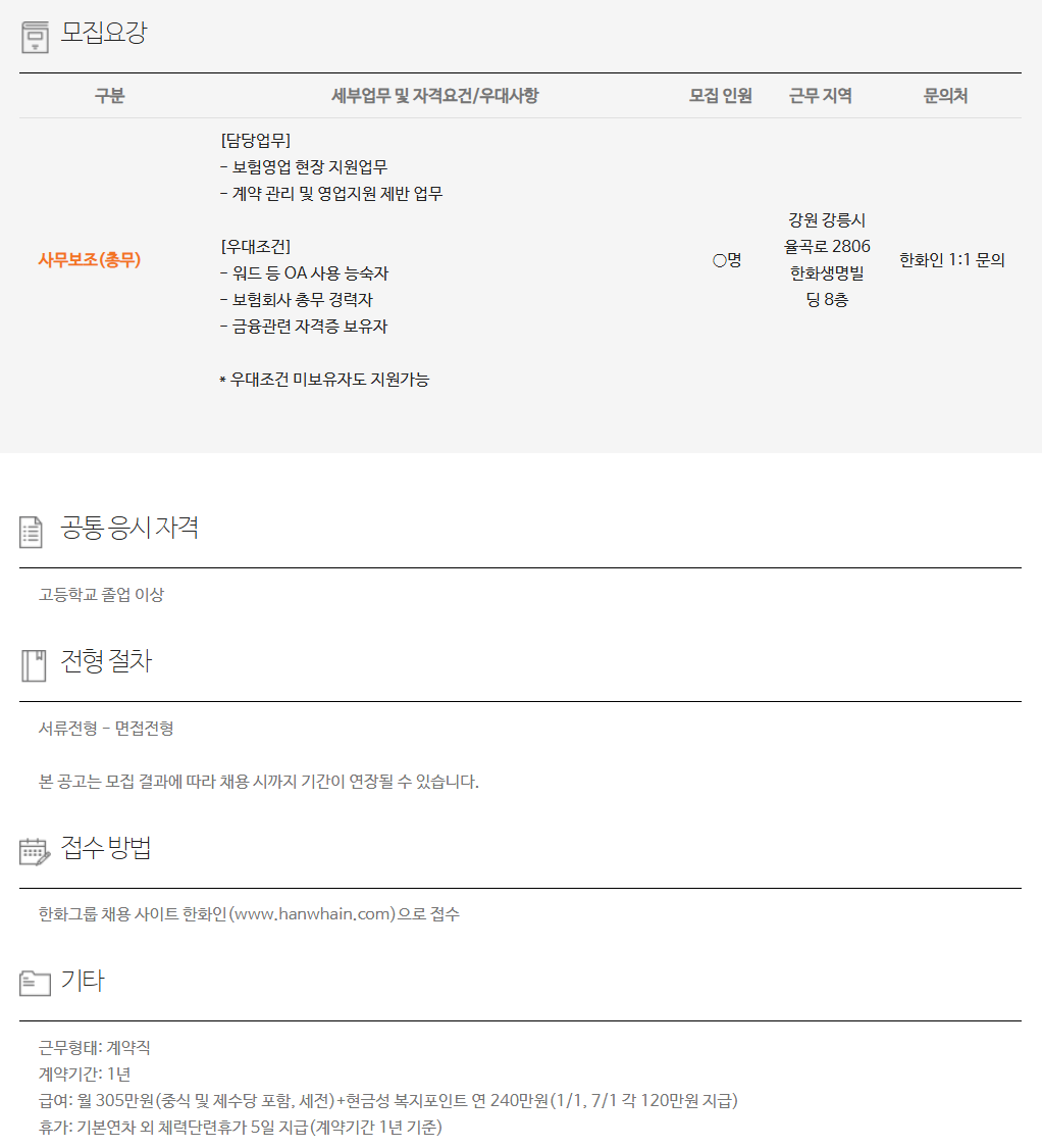 ±¸ºÐ ¼¼ºÎ¾÷¹« ¹× ÀÚ°Ý¿ä°Ç/¿ì´ë»çÇ× ¸ðÁý Àοø ±Ù¹« Áö¿ª ¹®ÀÇó »ç¹«º¸Á¶(Ãѹ«) [´ã´ç¾÷¹«] - º¸Ç迵¾÷ ÇöÀå Áö¿ø¾÷¹« - °è¾à °ü¸® ¹× ¿µ¾÷Áö¿ø Á¦¹Ý ¾÷¹« [¿ì´ëÁ¶°Ç] - ¿öµå µî OA »ç¿ë ´É¼÷ÀÚ - º¸Çèȸ»ç Ãѹ« °æ·ÂÀÚ - ±ÝÀ¶°ü·Ã ÀÚ°ÝÁõ º¸À¯ÀÚ * ¿ì´ëÁ¶°Ç ¹Ìº¸À¯ÀÚµµ Áö¿ø°¡´É ¡Û¸í °­¿ø °­¸ª½Ã À²°î·Î 2806 ÇÑÈ­»ý¸íºôµù 8Ãþ ÇÑÈ­ÀÎ 1:1 ¹®ÀÇ