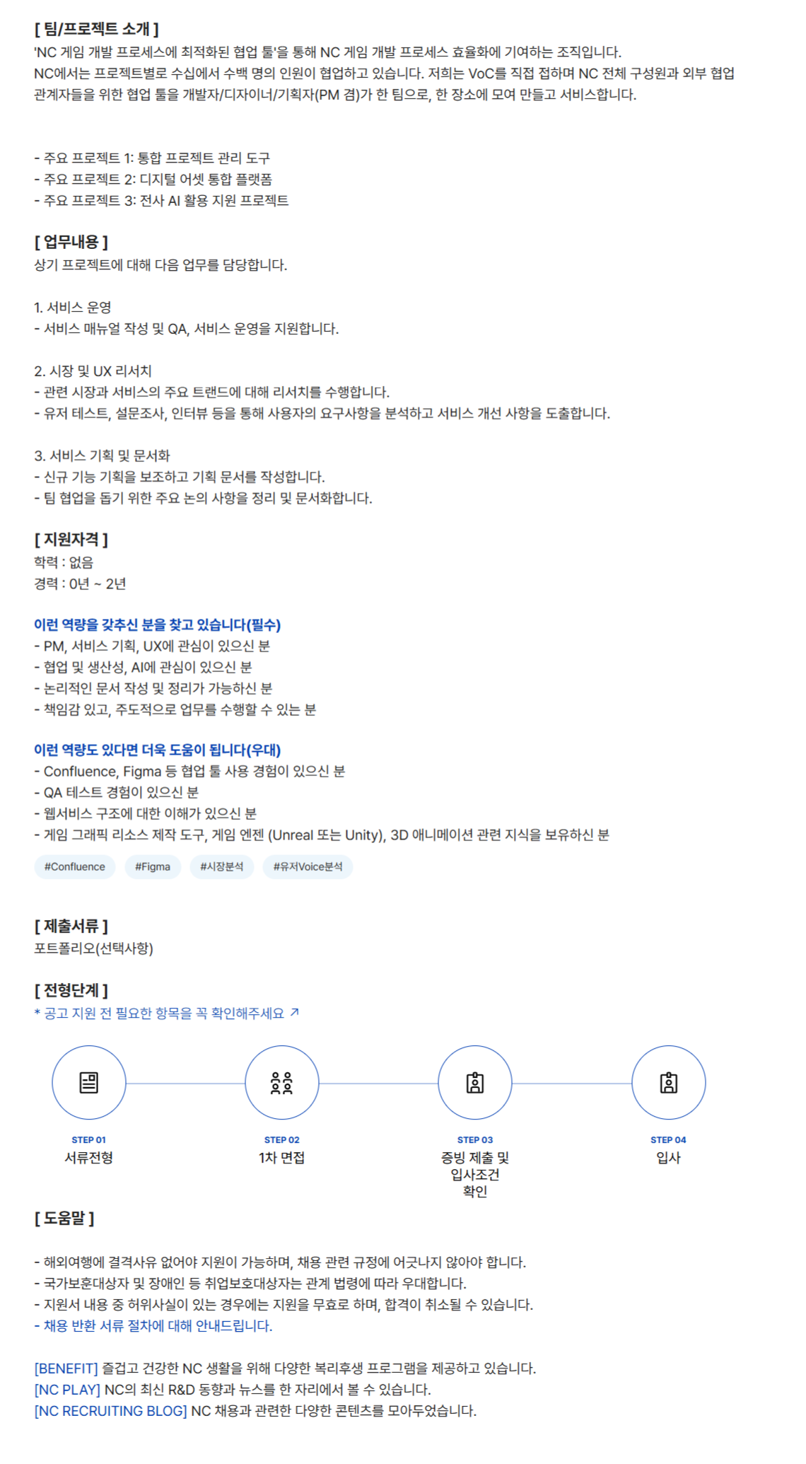 NC¿¡¼´Â ÇÁ·ÎÁ§Æ®º°·Î ¼ö½Ê¿¡¼ ¼ö¹é ¸íÀÇ ÀοøÀÌ Çù¾÷Çϰí ÀÖ½À´Ï´Ù. ÀúÈñ´Â VoC¸¦ Á÷Á¢ Á¢Çϸç NC Àüü ±¸¼º¿ø°ú ¿ÜºÎ Çù¾÷ °ü°èÀÚµéÀ» À§ÇÑ Çù¾÷ ÅøÀ» °³¹ßÀÚ/µðÀÚÀ̳Ê/±âȹÀÚ(PM °â)°¡ ÇÑ ÆÀÀ¸·Î, ÇÑ Àå¼Ò¿¡ ¸ð¿© ¸¸µé°í ¼ºñ½ºÇÕ´Ï´Ù.