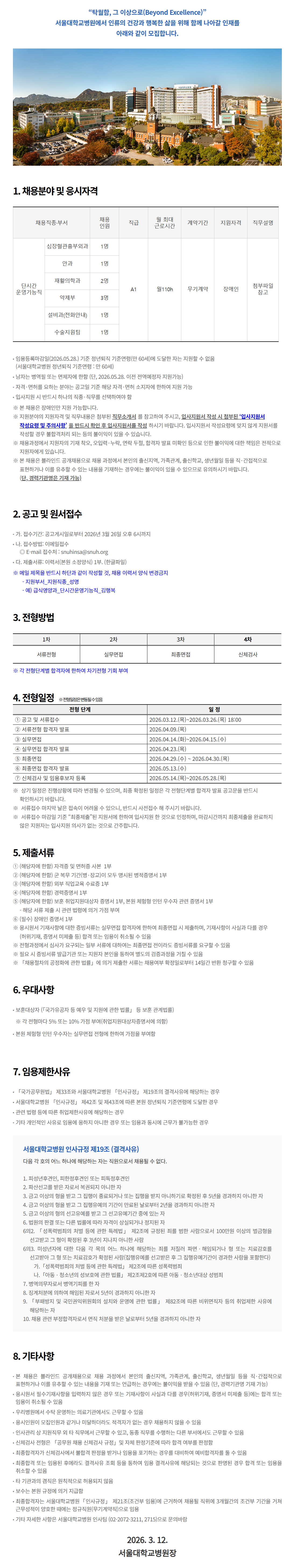 ÃÖÁ¾ÇÕ°ÝÀÚ´Â ¼¿ï´ëÇб³º´¿ø¡¸Àλç±ÔÁ¤¡¹ Á¦21Á¶(Á¶°ÇºÎ ÀÓ¿ë)¿¡ ±Ù°ÅÇÏ¿© ä¿ëµÉ Á÷À§¿¡ 3°³¿ù°£ÀÇ Á¶°ÇºÎ ±â°£À» °ÅÃÄ ±Ù¹«¼ºÀûÀÌ ¾çÈ£ÇÑ ¶§¿¡´Â Á¤±ÔÁ÷¿ø(¹«±â°è¾àÁ÷)À¸·Î ÀÓ¿ë