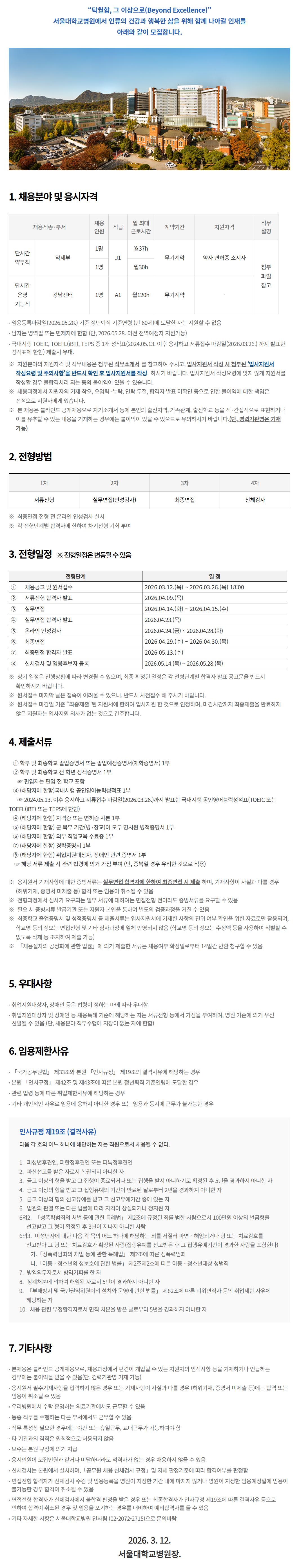 Ãë¾÷Áö¿ø´ë»óÀÚ ¹× Àå¾ÖÀÎ µî ä¿ëƯ·Ê ±âÁØ¿¡ ÇØ´çÇÏ´Â ÀÚ´Â ¼·ùÀüÇü µî¿¡¼ °¡Á¡À» ºÎ¿©Çϸç, º´¿ø ±âÁØ¿¡ ÀǰŠ¿ì¼± ¼±¹ßµÉ ¼ö ÀÖÀ½ (´Ü, ä¿ëºÐ¾ß Á÷¹«¼öÇà¿¡ ÁöÀåÀÌ ¾ø´Â ÀÚ¿¡ ÇÑÇÔ)