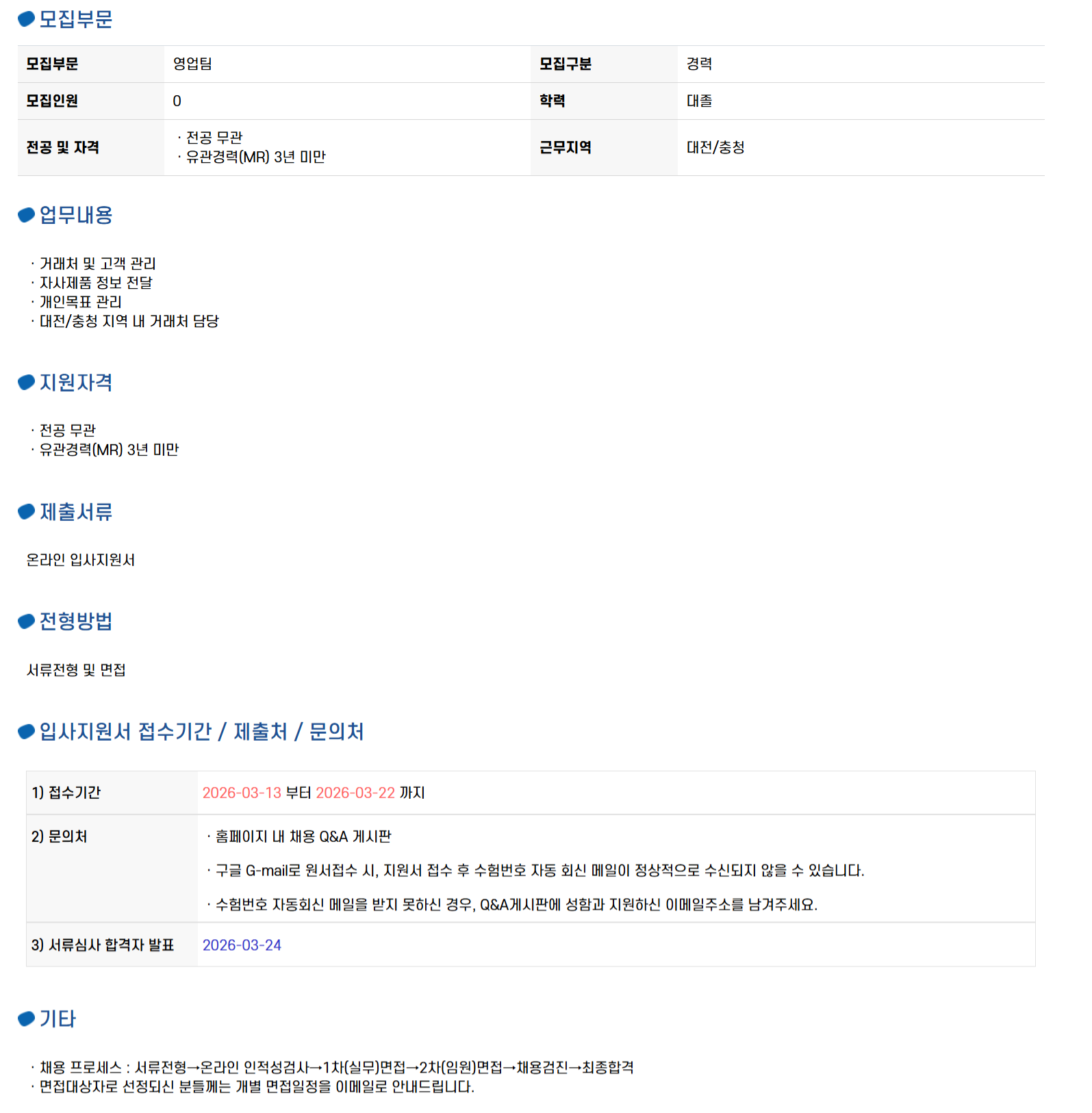 [Á¤±ÔÁ÷/°æ·Â] ´ëÀü/ÃæÃ» º´¿ø¿µ¾÷(MR) ä¿ë