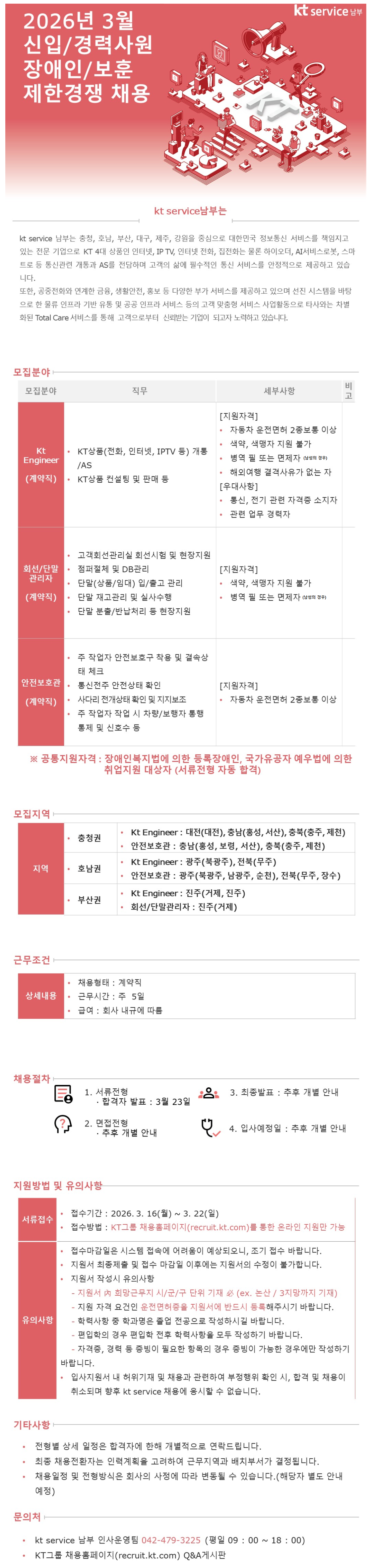 [kt service³²ºÎ] '26³â 3¿ù ½ÅÀÔ/°æ·Â»ç¿ø ä¿ë Àå¾ÖÀÎ/º¸ÈÆ ÀüÇü