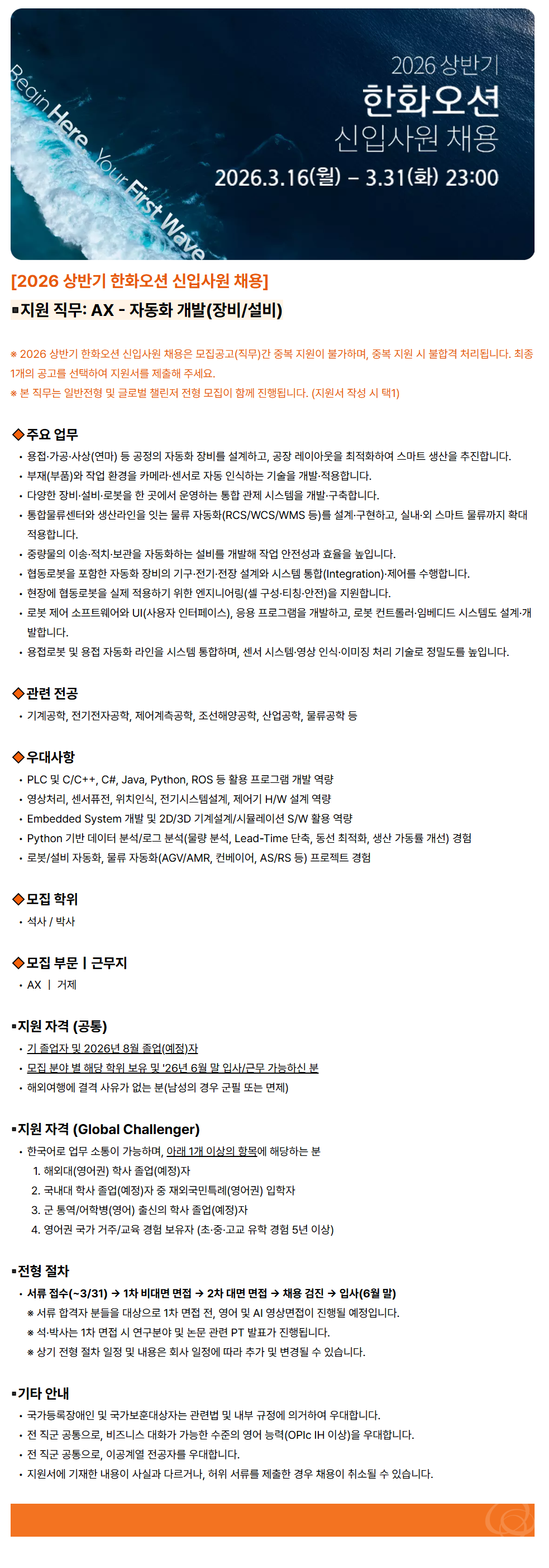 ◾Áö¿ø Á÷¹«: AX - ÀÚµ¿È °³¹ß(Àåºñ/¼³ºñ)