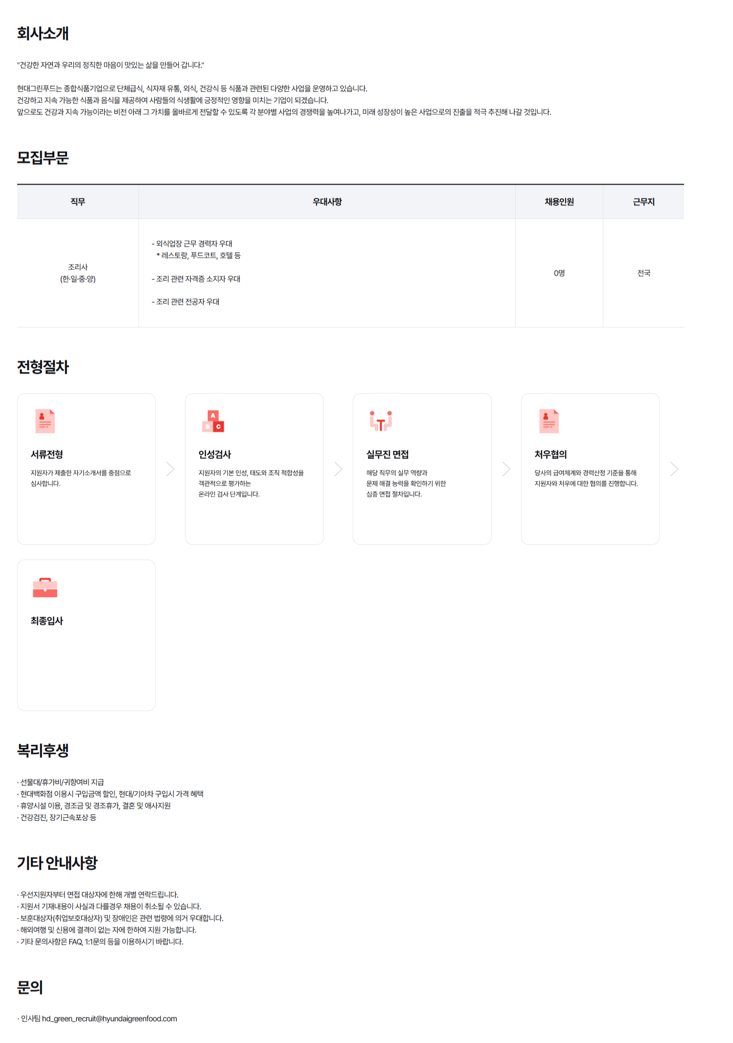 Á÷¹« ¿ì´ë»çÇ× Ã¤¿ëÀοø ±Ù¹«Áö Á¶¸®»ç (ÇÑ¡¤ÀÏ¡¤Áß¡¤¾ç) - ¿Ü½Ä¾÷Àå ±Ù¹« °æ·ÂÀÚ ¿ì´ë * ·¹½ºÅä¶û, ǪµåÄÚÆ®, È£ÅÚ µî - Á¶¸® °ü·Ã ÀÚ°ÝÁõ ¼ÒÁöÀÚ ¿ì´ë - Á¶¸® °ü·Ã Àü°øÀÚ ¿ì´ë 0¸í Àü±¹
