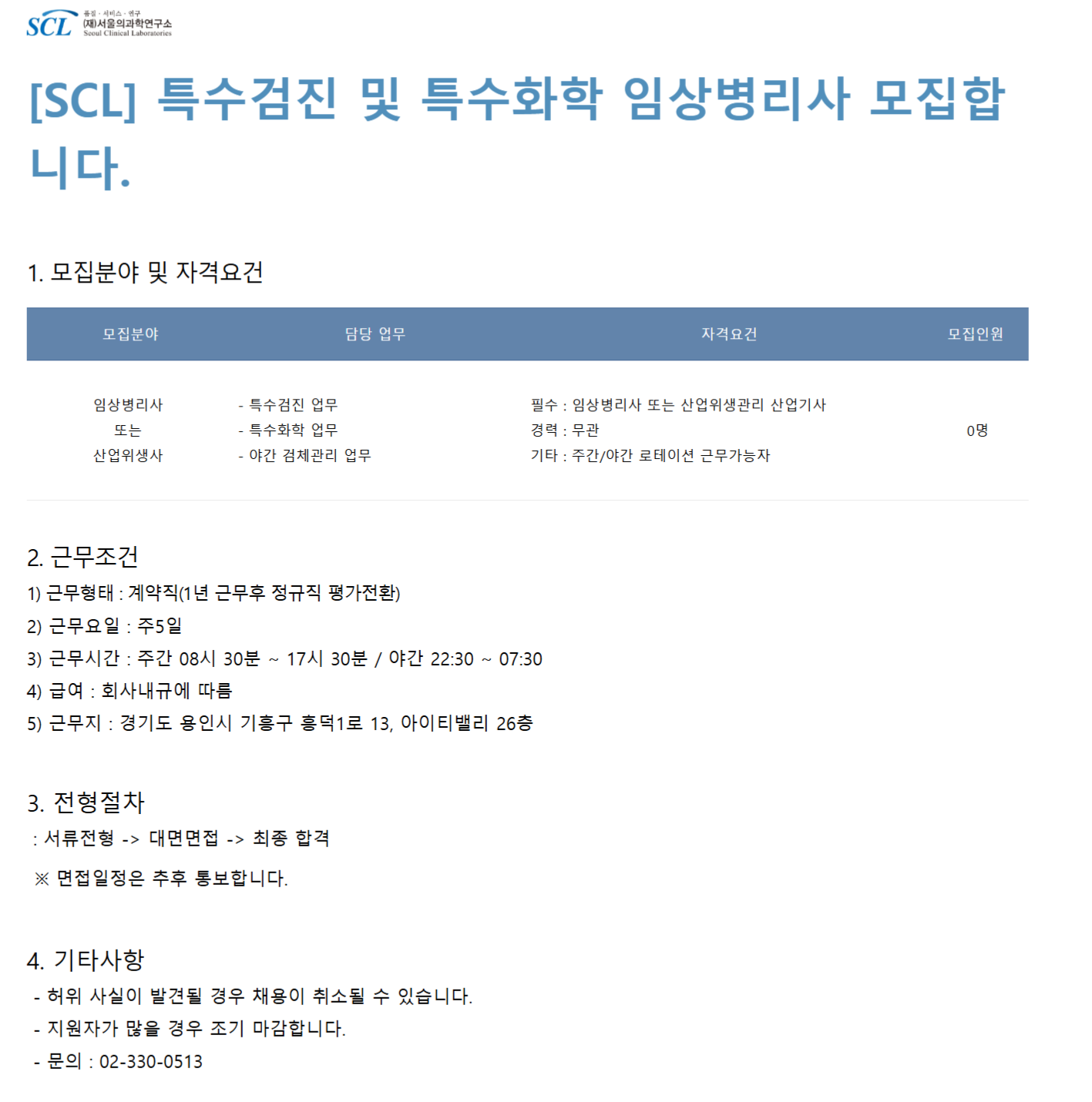 [SCL] Ư¼ö°ËÁø ¹× Ư¼öÈÇÐ ÀÓ»óº´¸®»ç ¸ðÁýÇÕ´Ï´Ù.